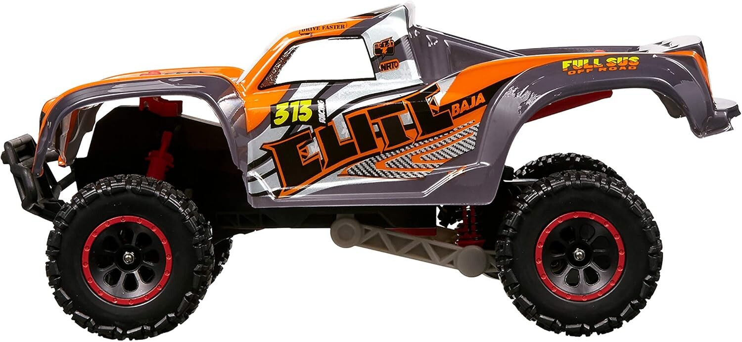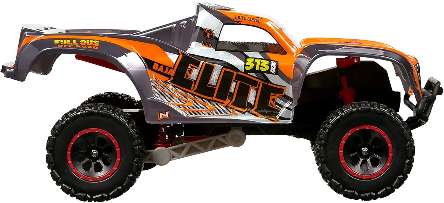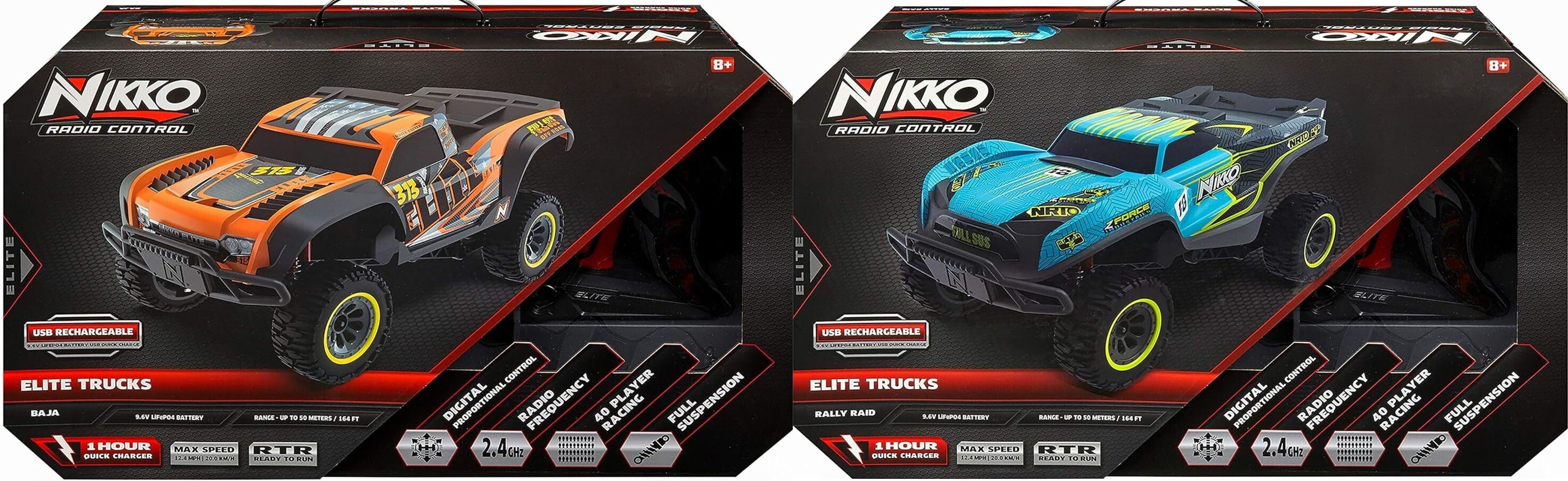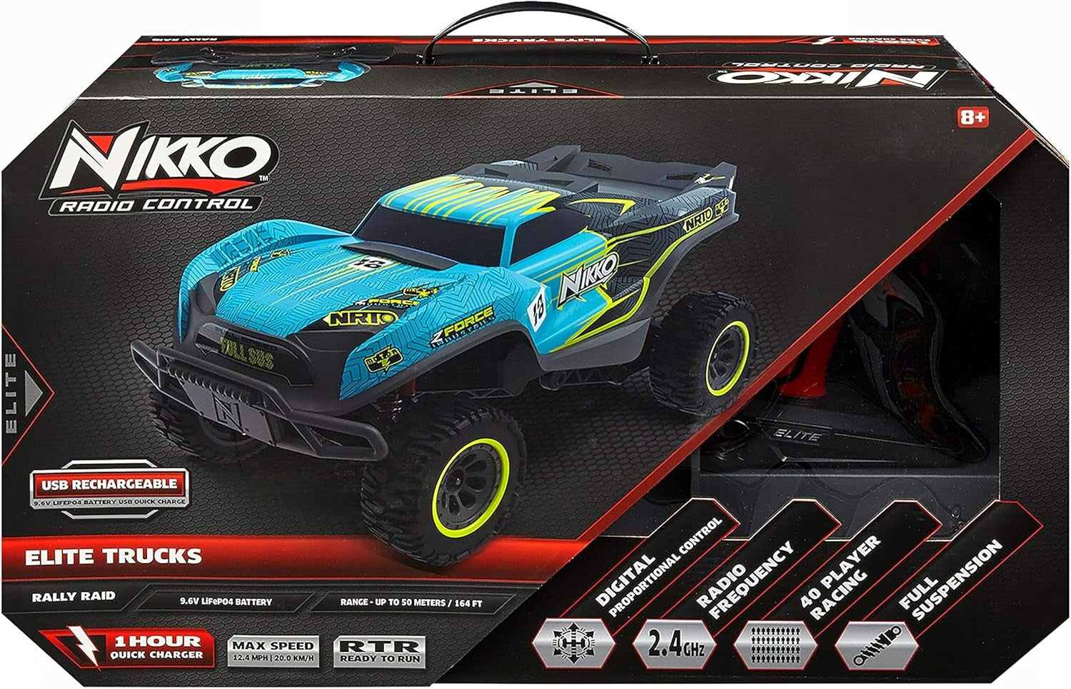 NIKKO Elite Trucks offer the best off road racing experience in remote controlled cars! With a quick charger 9.6V battery and a 360 electric drive, this rc car has extreme power in a strong chassis. Race at high speed up to 20 Km/h! Under the ultra strong, light weight, vacuum shaped hoods of this NIKKO RC is at real speed or over 20 KM/H. Beneath the ultra strong, light weight, vacuum formed body, lies a fully independent sprung chassis with metal steering rods and a rear differential. All in all, an absolute must-have for rc fans! Charge the battery quickly with a USB charging cable and race on again! Race with friends at high speed up to 20 KM/H.