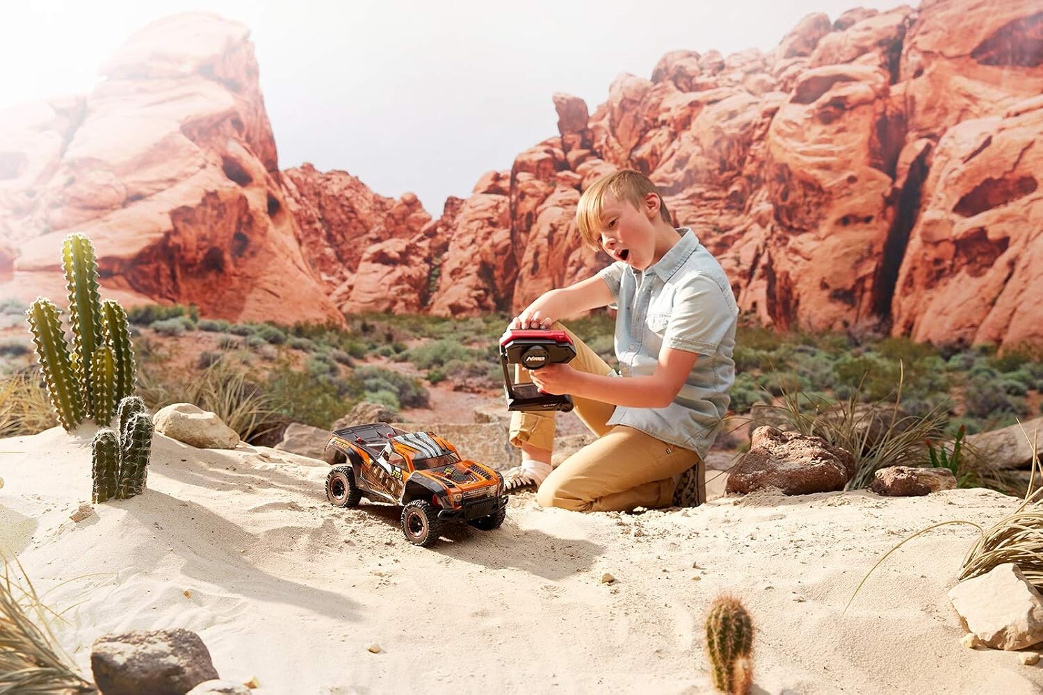 - Get ready for action! this rc car comes completely ready for use, including 4XAAA batteries for the controller and the latest 9.6v li-ion 700mah and usb quick charger for the remote vehicle.