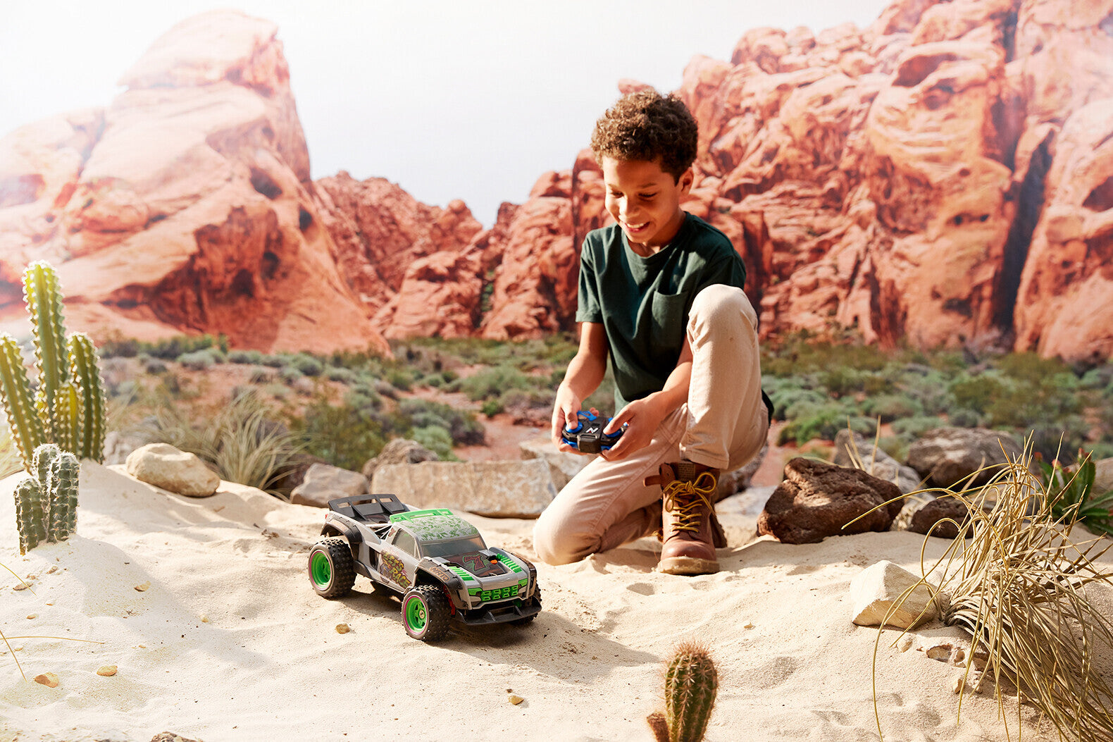Hit The Trail With Pro Trucks New Splash And Dust Proof Full Suspension Chassis. Charge Up The Quick Charge Usb Battery And Blast Through Mud, Sand, Dirt And Even Snow! When It'S Time To Head Home, Just Rinse Pro Trucks Off With A Hose Or In A Sink.