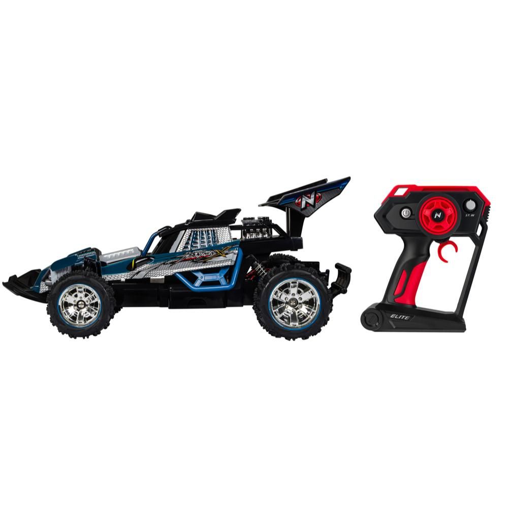 - All terrain superior racing experience. Robust truck with all-terrain suspension, high grip tires and high performance motor for a unique and aggressive racing experience.
