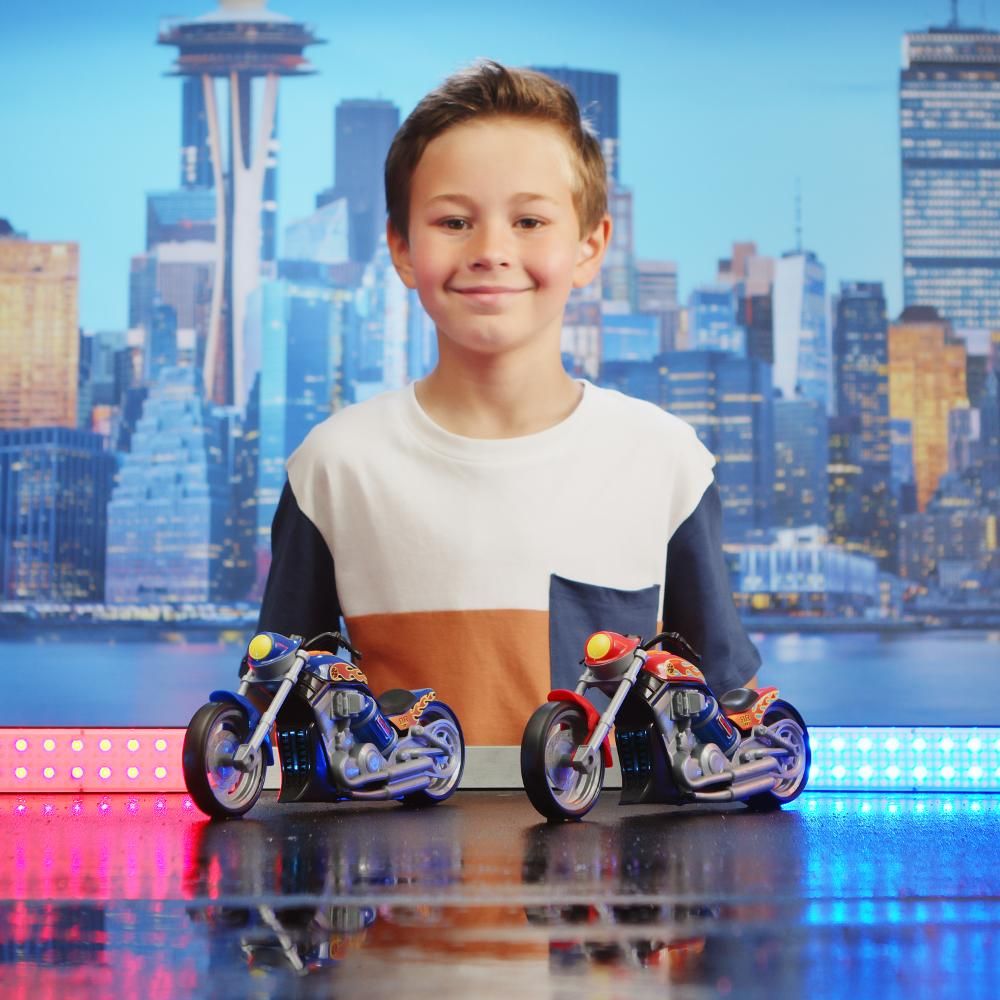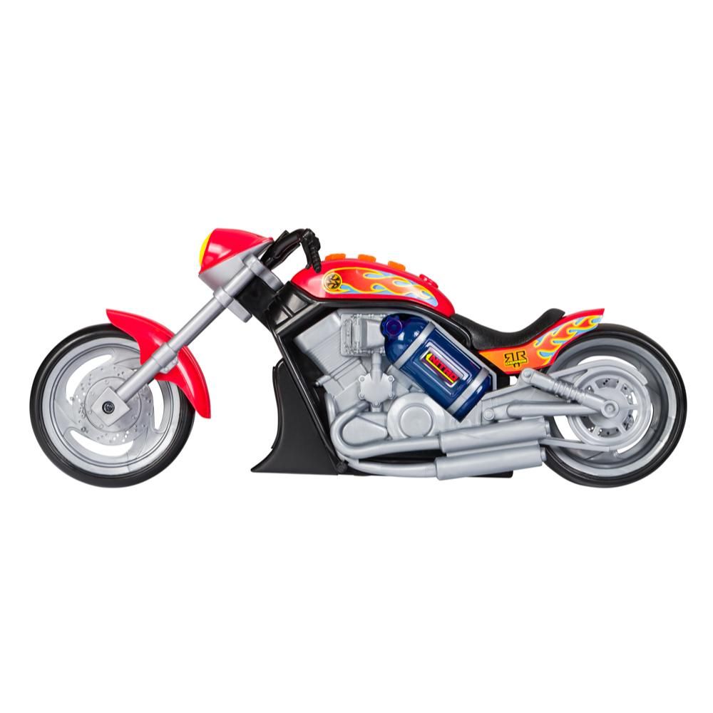 These custom choppers have big sounds, cool designs, and light up nitrous tanks to really rev the imagination. Press the button to hear the rumble of the chopper and light up your ride!