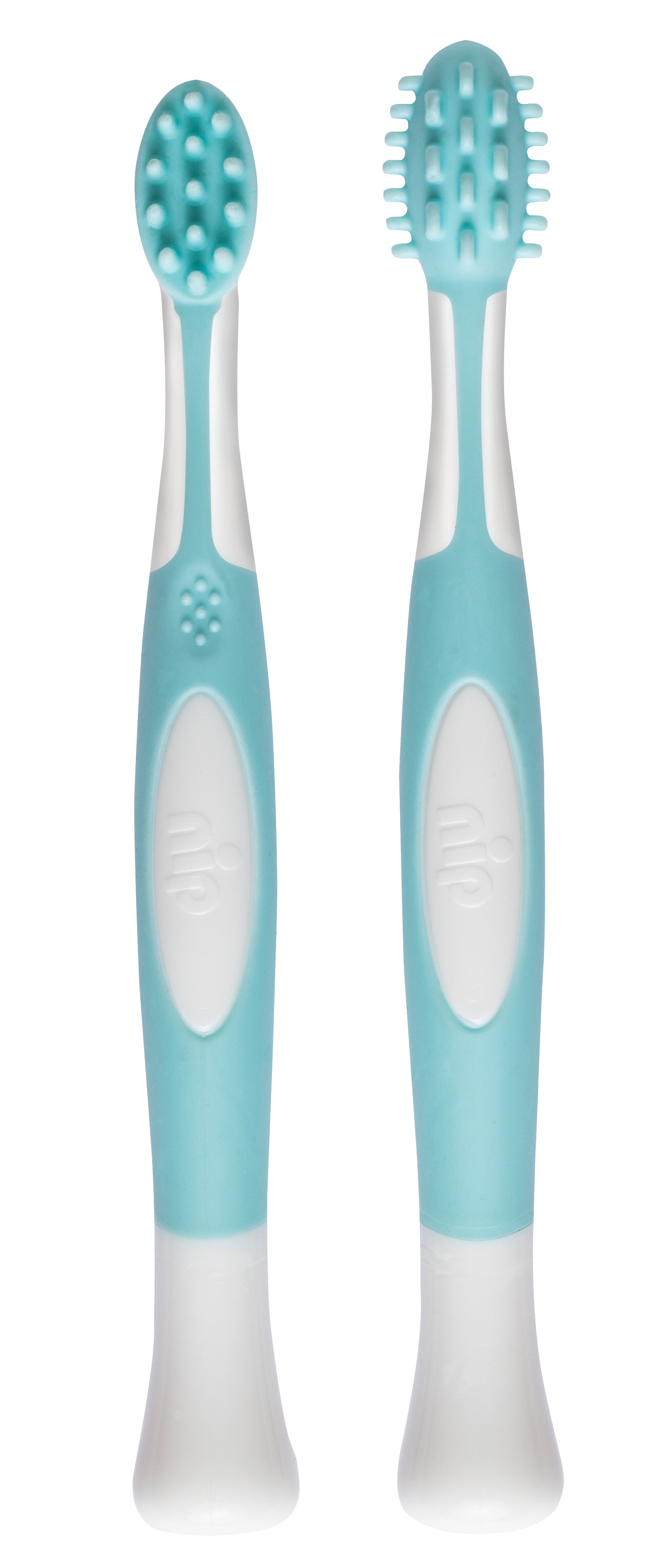 Gently care for your babyƒ??s first milk teeth and gums with the Nip Baby Toothcare Starter Set, perfect for infants from 4 months onward. This 2-piece set includes a soft baby toothbrush and a cleaning trainer designed for comprehensive dental care. The soft rubber bristles of the cleaning trainer effectively clean the tops of your babyƒ??s first milk teeth, while the soft rubber nubs gently massage sensitive gums, doubling as a baby teether and tongue brush. The ergonomic shape and non-slip grip make the toothbrush and trainer easy to hold, ensuring a comfortable and secure experience for both baby and parent. Crafted with the utmost care, the Nip tooth care starter set is BPA-free, reflecting Nip's commitment to safety and quality in baby products. From families for families, this set is ideal for introducing your little one to tooth brushing and dental care.