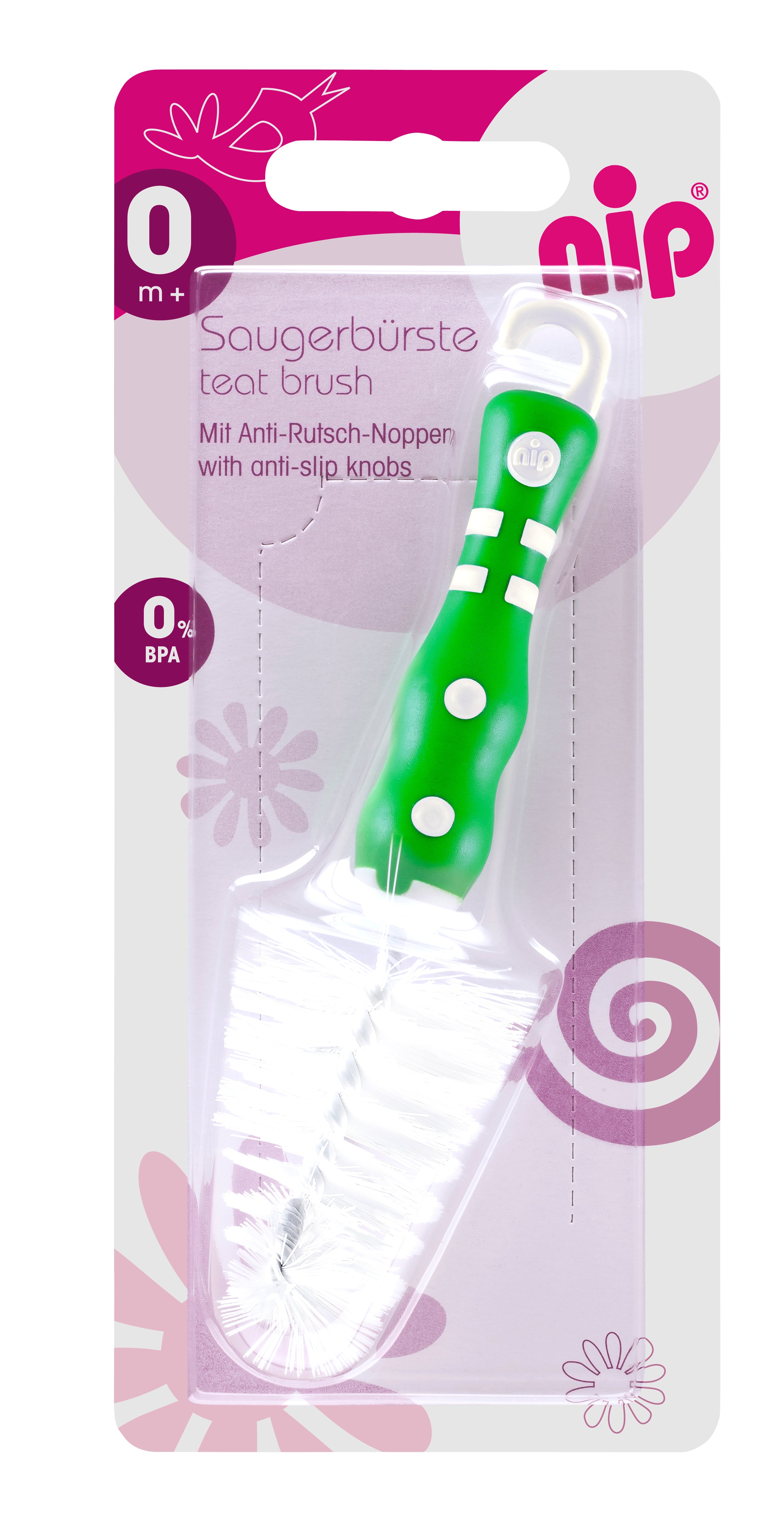 The Nip Teat Brush is designed for easy cleaning of baby Teats, ensuring a clean bottle for safe feed. With its ergonomic handle and soft-touch surface, it offers a secure grip and practical suspension. The durable, soft bristles and sponge tip adapt perfectly to the shape of the Teat, making it ideal for infants, babies, toddlers, and kids. This cleaning bottle brush is essential for thorough bottle cleaning and convenience for parents.