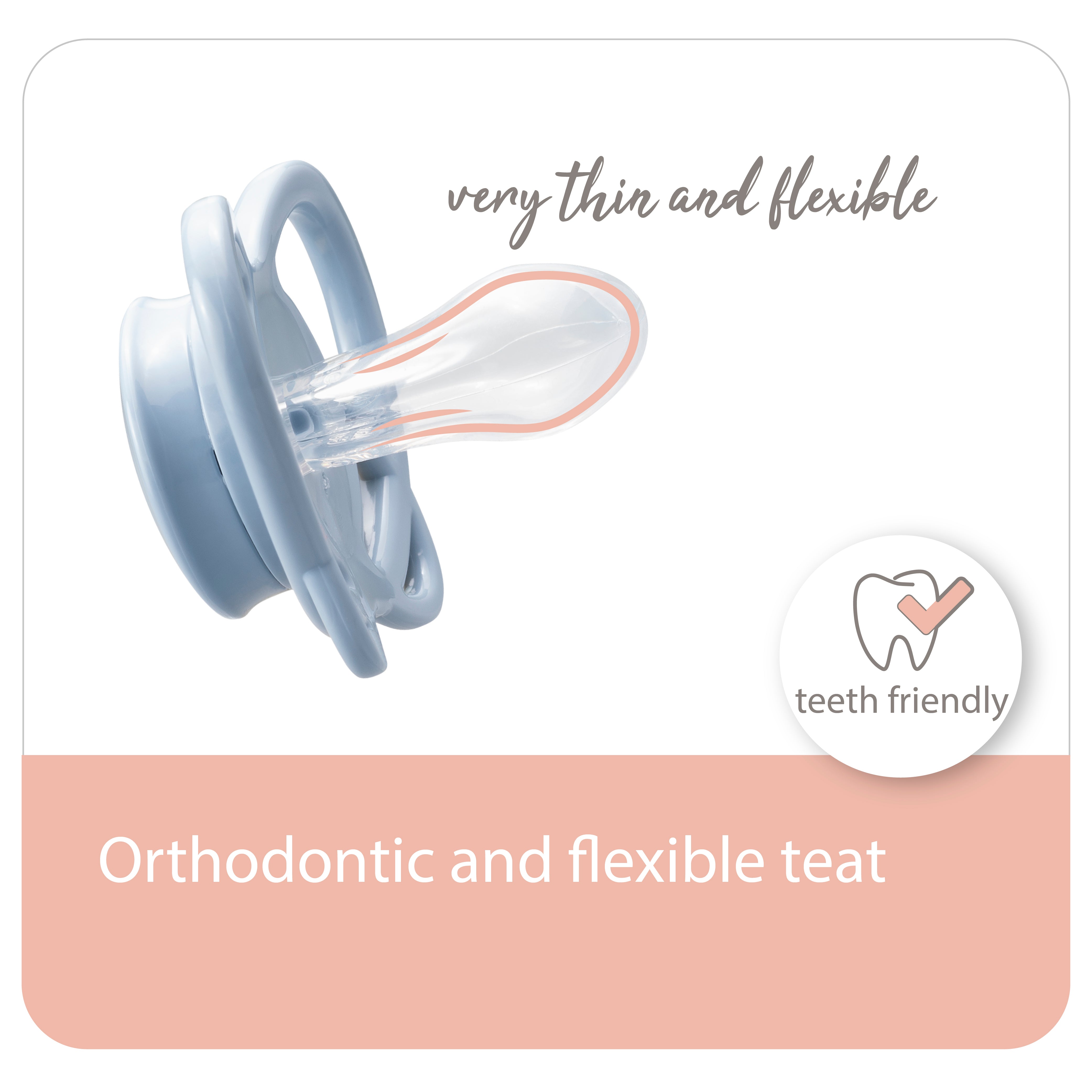 - Symmetrical Orthodontic Silicone Teat: The soother Features a symmetrical orthodontic teat made from ultra-soft silicone, designed to support baby wellness and prevent confusion during breastfeeding.