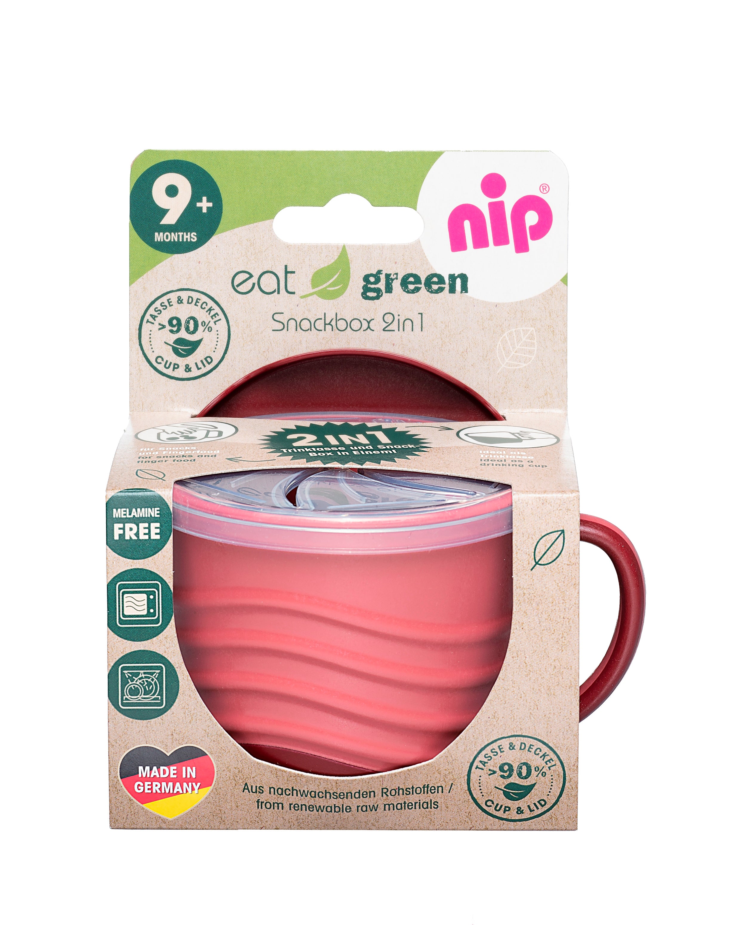 Discover the ultimate in eco-friendly, practical, and stylish feeding solutions with the Nip Eat Green Snack Box 2-in-1. Designed with both sustainability and convenience in mind, this snack box is perfect for toddlers learning to eat and drink independently. Made from more than 90% renewable raw materials*, it reflects our commitment to nature-friendly and organic baby feeding products.