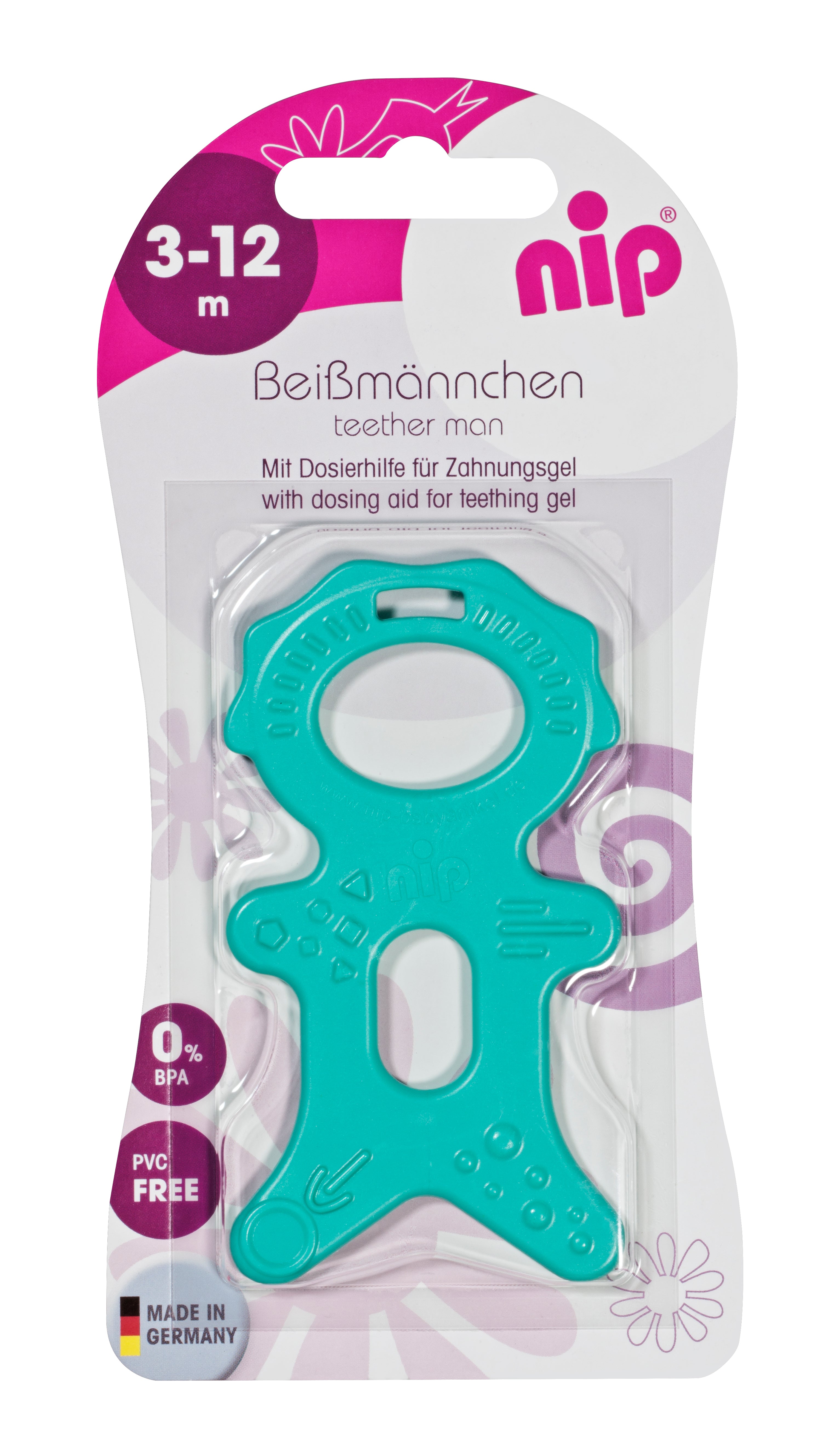 The teether man is a perfect choice in teething & sensory stimulating infant fun! This teether is perfect for gently massage of the gum and a pain relief when the first milk teeth are on their way.