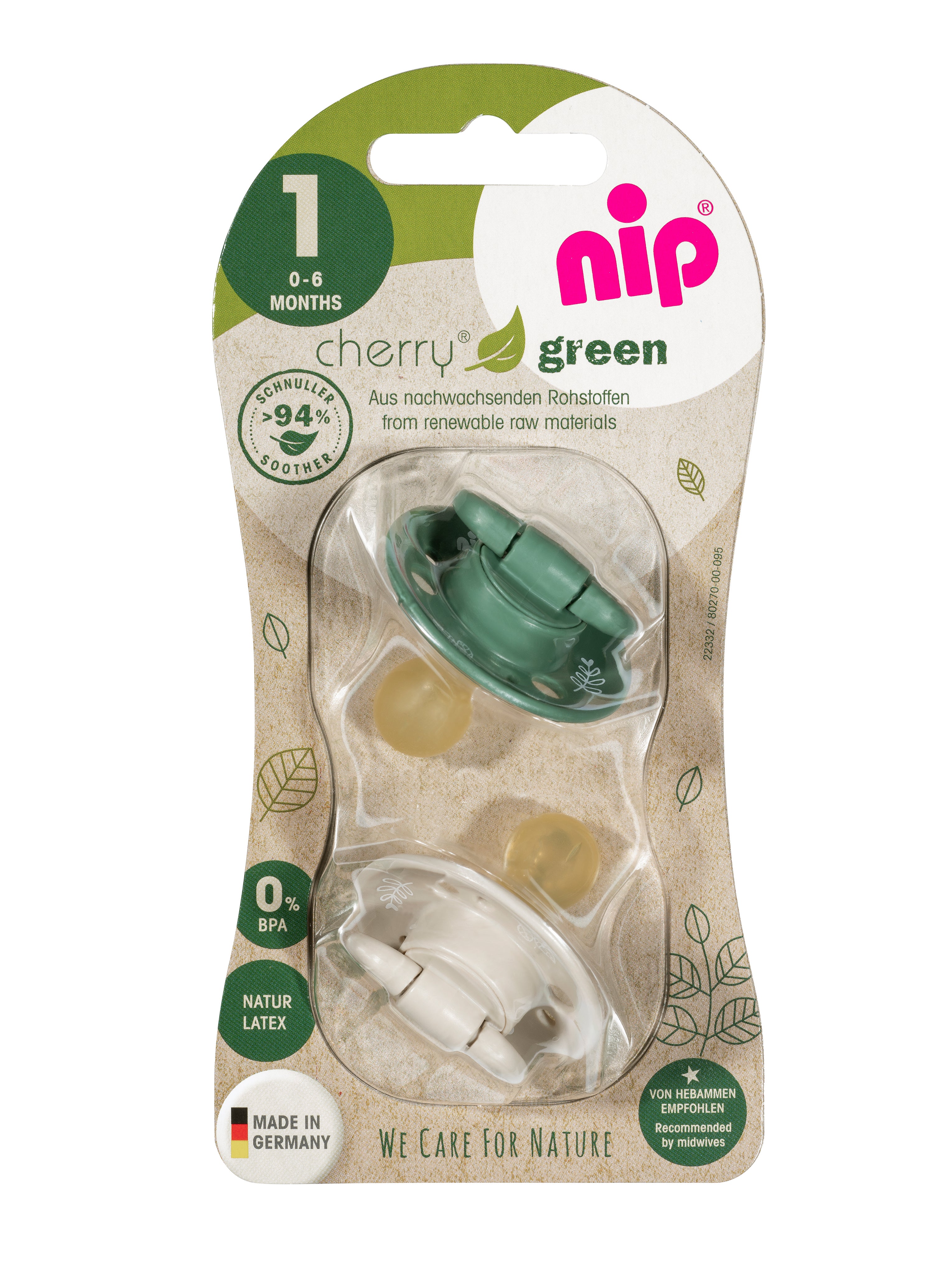 The Cherry Green Baby Soother is the perfect blend of eco-friendliness and baby care. Made from more than 94% renewable raw materials, including natural latex for the soft, breastfeeding-friendly round teat, and bio-based plastics from sugar cane, this eco-friendly soother is designed with both your baby and the environment in mind. Ideal for baby sleep and wellness, the Cherry Green pacifier Features a soft, skin-like texture that is gentle on sensitive gums, making it an excellent choice for newborn teether pacifiers. Its large ventilation holes allow for optimal airflow, preventing skin irritation and ensuring comfort throughout the night. The one-piece design of this ultra-light soother reduces pressure on teeth and jaw areas, making it the best pacifier for breastfed babies. BPA-free and toxic-free, the Cherry Green soother calms and relaxes babies while promoting healthy oral development with its symmetrical orthodontic design. Packaged sustainably with more than 90% recycled paper and 80% recycled content in the foil, this soother is a must-have baby essential for eco-conscious parents.