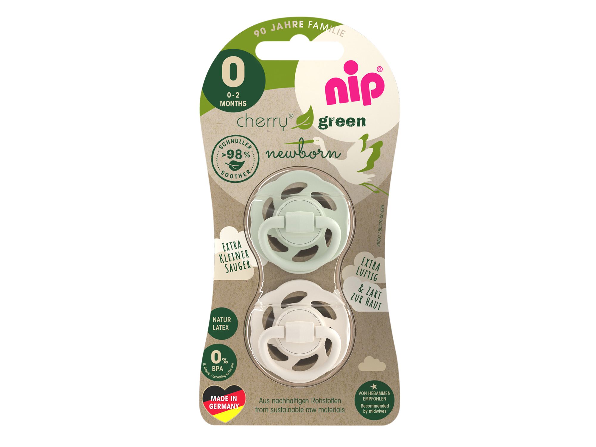 Introducing the Cherry Green Soother, specially designed for delicate newborns aged 0-2 months. This ultra-light, breastfeeding-friendly pacifier is crafted from 100% natural latex, ensuring a soft, skin-like texture that calms and relaxes babies. The sootherƒ??s extra-small, round teat mimics the natural shape of the motherƒ??s breast, offering a familiar and soothing experience for your little one.