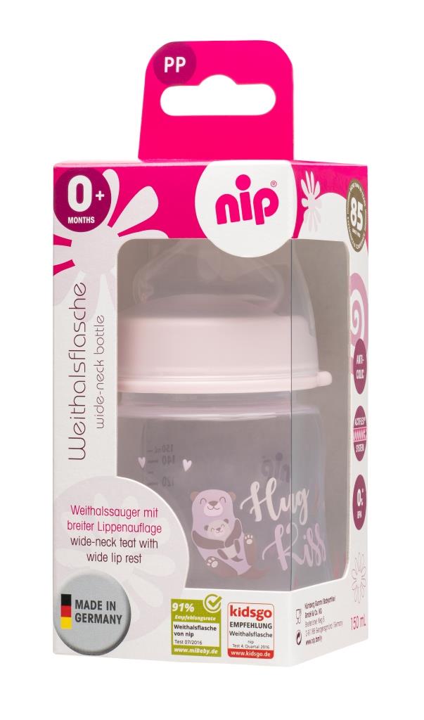 Phase 1: Bottle Feeding From birth, Nip offers the perfect bottle to match your babyƒ??s developmental needs. Our bottles are designed with a silicone or latex teat, providing a natural, breast-like feeding experience.