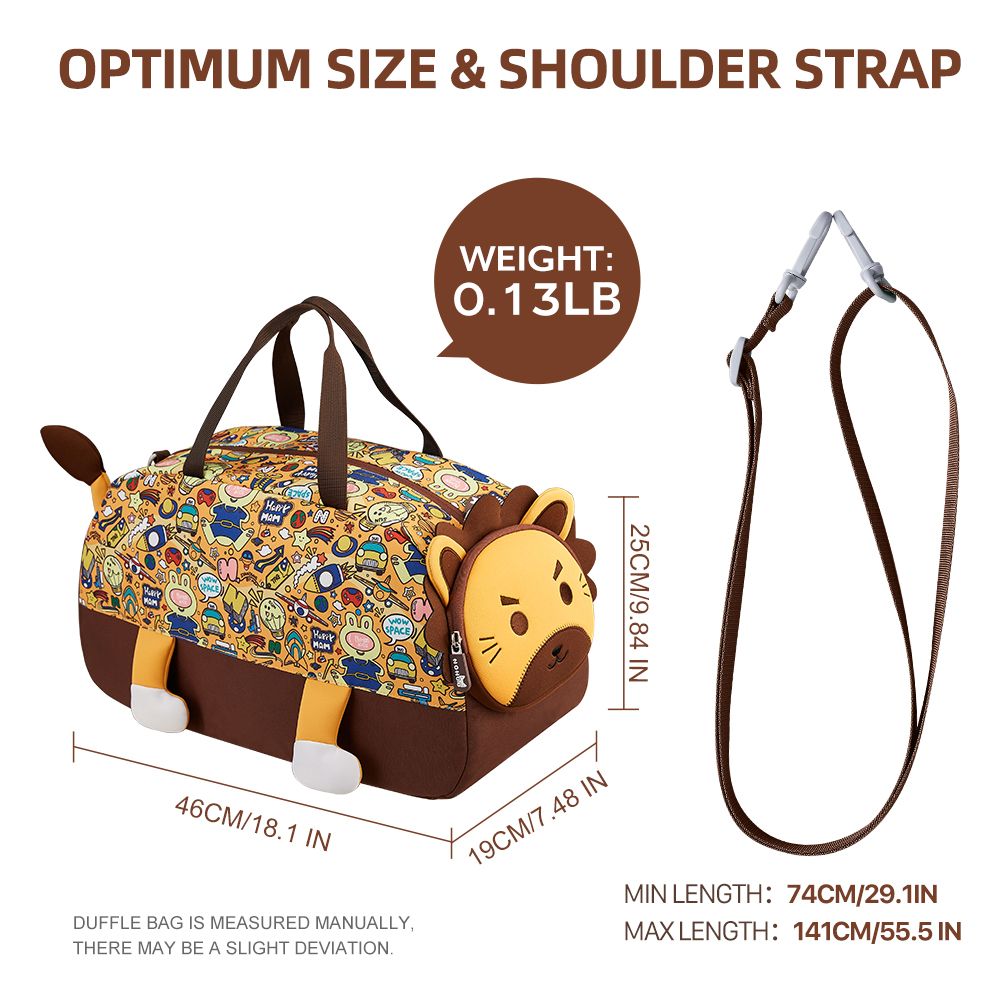 This adorable and spacious duffle bag is designed for little explorers who love to travel in style. Featuring a fun and eye-catching 3D design, it turns every trip into an exciting adventure! Made from lightweight, waterproof polyester, it keeps your child’s essentials safe and dry, whether for school, sleepovers, or weekend getaways. With dimensions of 46 x 19 x 25 cm, it’s the perfect size to fit clothes, books, and toys while staying super easy to carry. Designed for maximum comfort and convenience, this duffle bag comes with both sturdy handles and a comfy crossbody strap, giving kids the freedom to carry it their way. The large-capacity main compartment offers plenty of storage space while keeping packing simple and hassle-free. Whether they’re heading to a friend’s house or a family trip, this bag makes packing fun and effortless, encouraging independent and organized travel for kids. More than just a bag, the Nohoo 3D Duffle is a statement of fun and adventure! Its vibrant, three-dimensional design adds a touch of excitement to every journey, making it a must-have for young travelers. Say goodbye to boring bags—this one is all about style, space, and convenience in one super cute package! Let your little one travel light, pack smart, and stand out wherever they go!