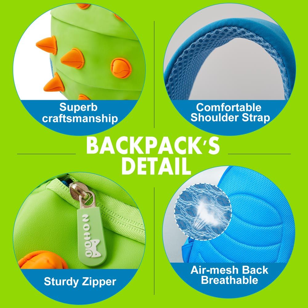Kids love spiky dinosaurs! The Nohoo Jungle Backpack - Spiky Dinosaur comes in adorable, attractive look to make your kid love to go to school. The unique 3D design lets your kid flaunt it on trip to the beach or a picnic. It features plenty of space for toys, snacks and other kid's essential accessories. The shoulder strap is specially made for kids to enjoy their surroundings happily. Made from neoprene fabric, it is lightweight eco-friendly, waterproof, shockproof and washable. The high quality makes it durable and long lasting.
