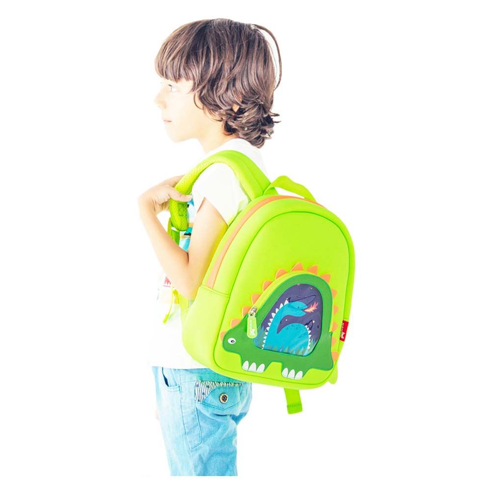 Let your kids flaunt them on a trip to the beach or a picnic with the Nohoo Jungle Backpack - Stegosaurus. This ultra cool backpack with 3D design is perfect for young stars. With cute, adorable look, kids will sure fall love in this fantastic backpack. It features plenty of space for toys, snacks and other kid's essential accessories. The shoulder strap is specially made for kids to enjoy their surroundings happily. Made from neoprene fabric, it is lightweight eco-friendly, waterproof, shockproof and washable. The high quality makes it durable and long lasting.