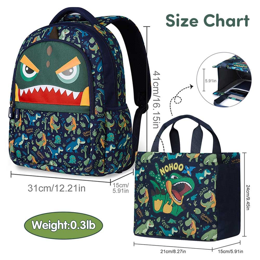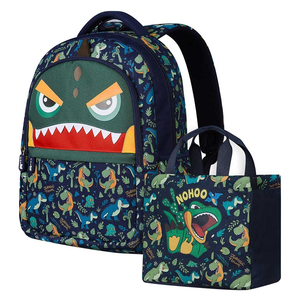 Nohoo Kids Dino 16Inch School Bag with Handbag Combo Set - Purple