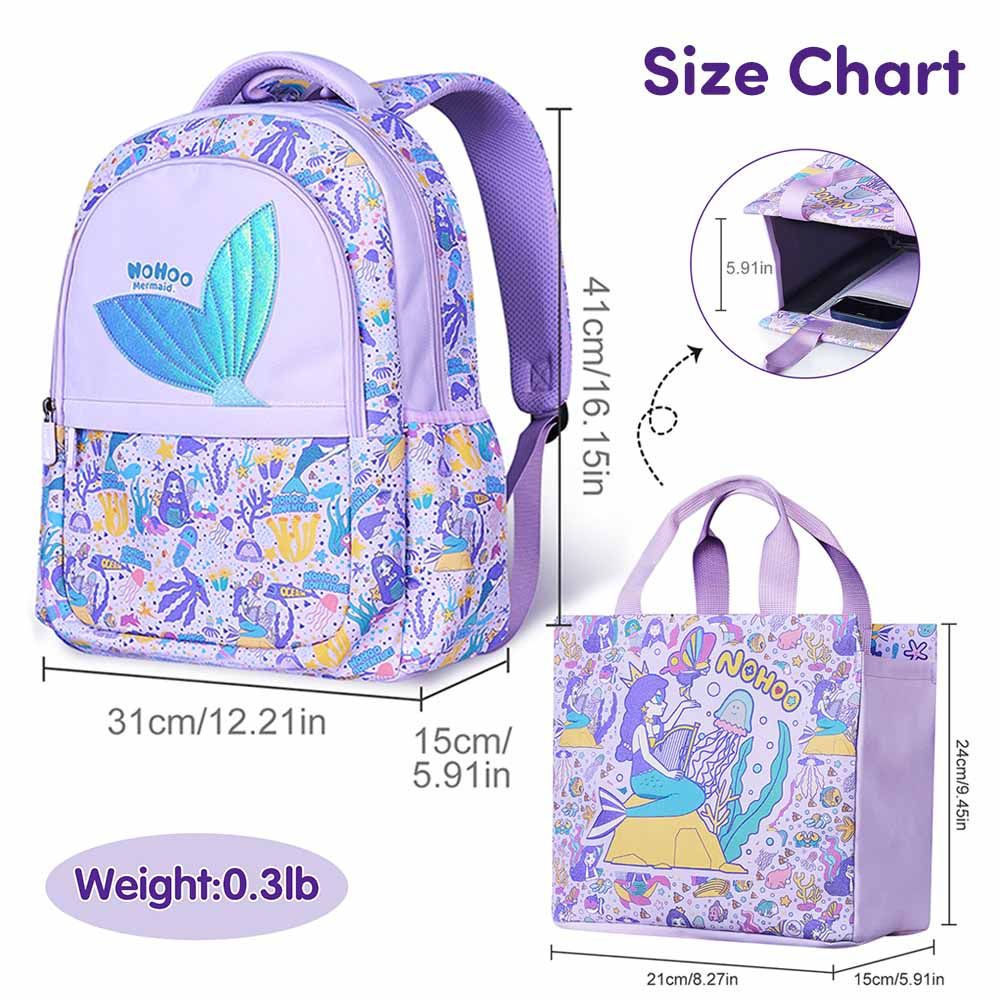 Nohoo Kids Mermaid 16Inch School Bag with Handbag Combo Set - Blue