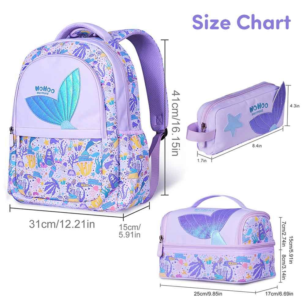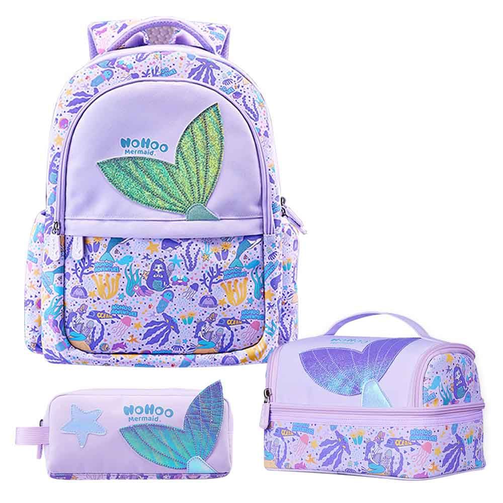 Nohoo Kids Mermaid 16Inch School Bag with Lunch Bag and Pencil Case - Blue (Set of 3)