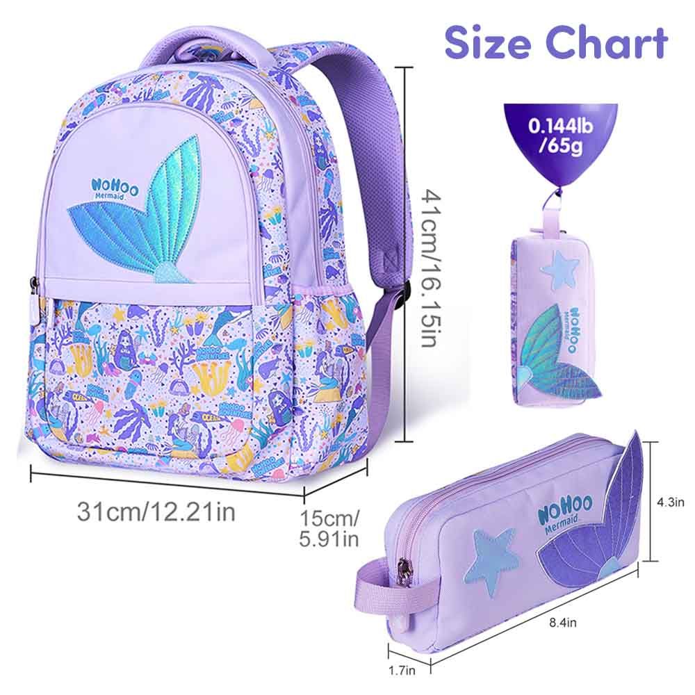 Nohoo Kids Mermaid 16Inch School Bag with Pencil Case Combo Set - Blue