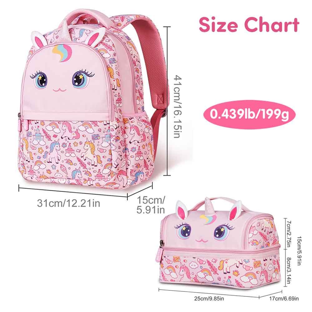 Nohoo Kids Unicorn 16Inch School Bag with Lunch Bag Combo Set - Pink
