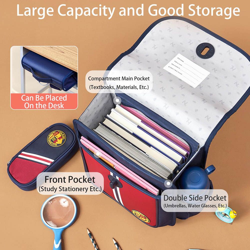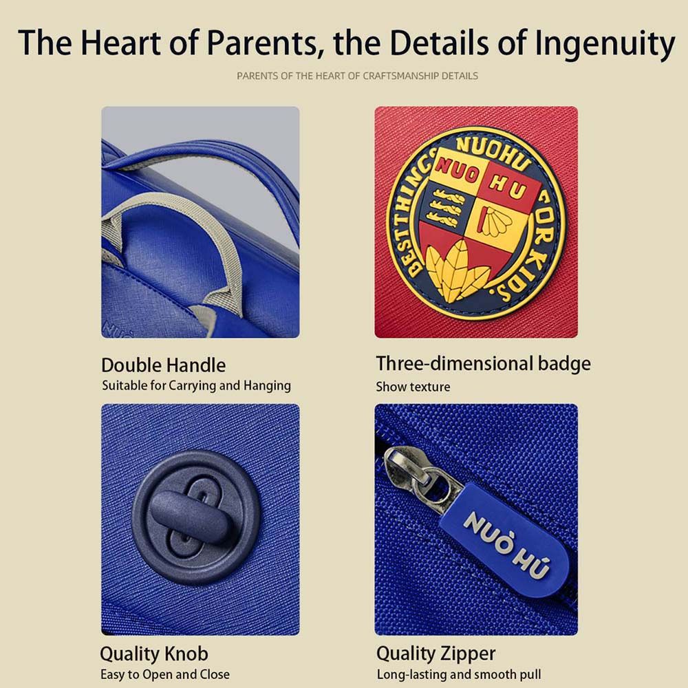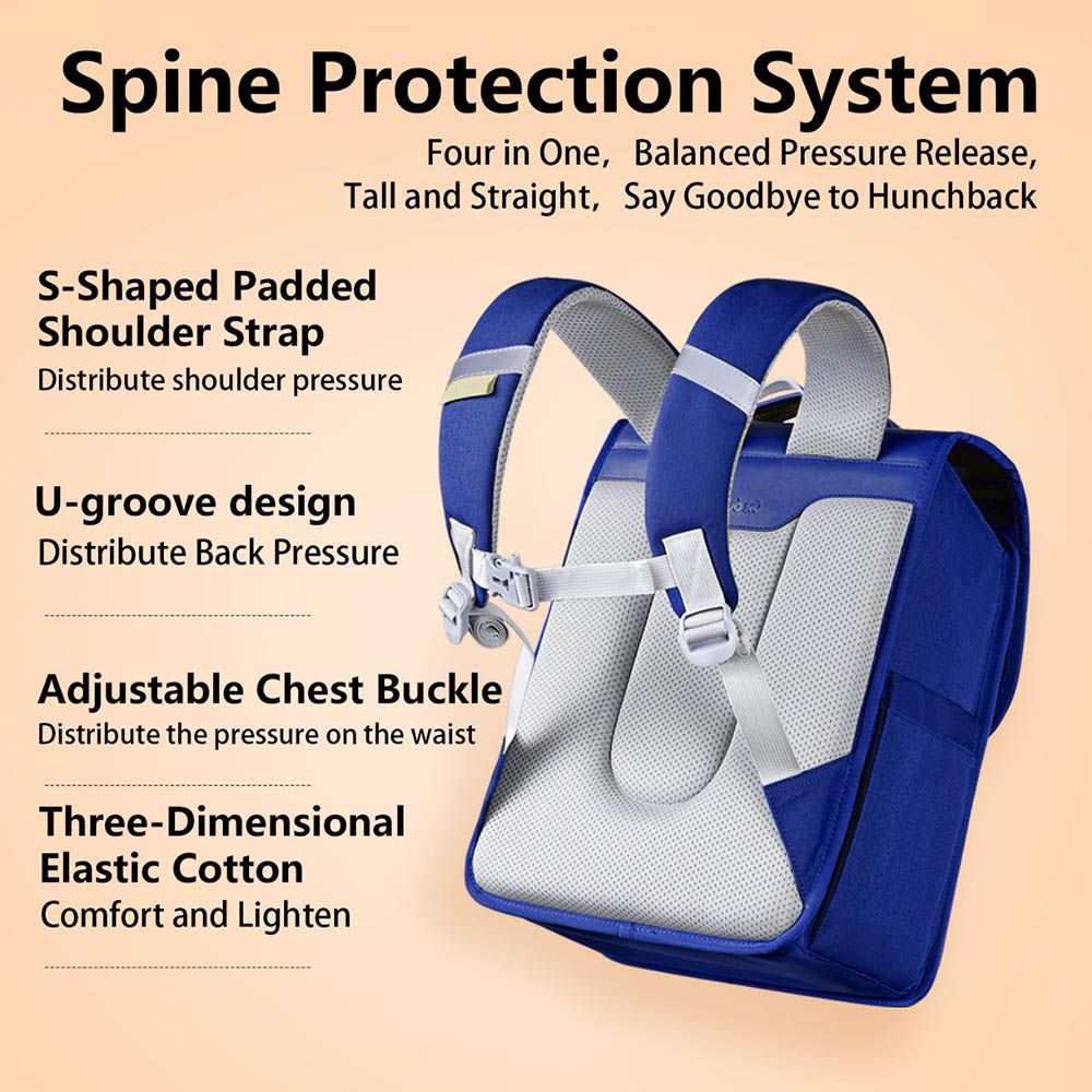 Nohoo Preppy Spine Protection Horizontal School Backpack for 0-5 Grade Primary Students - Blue