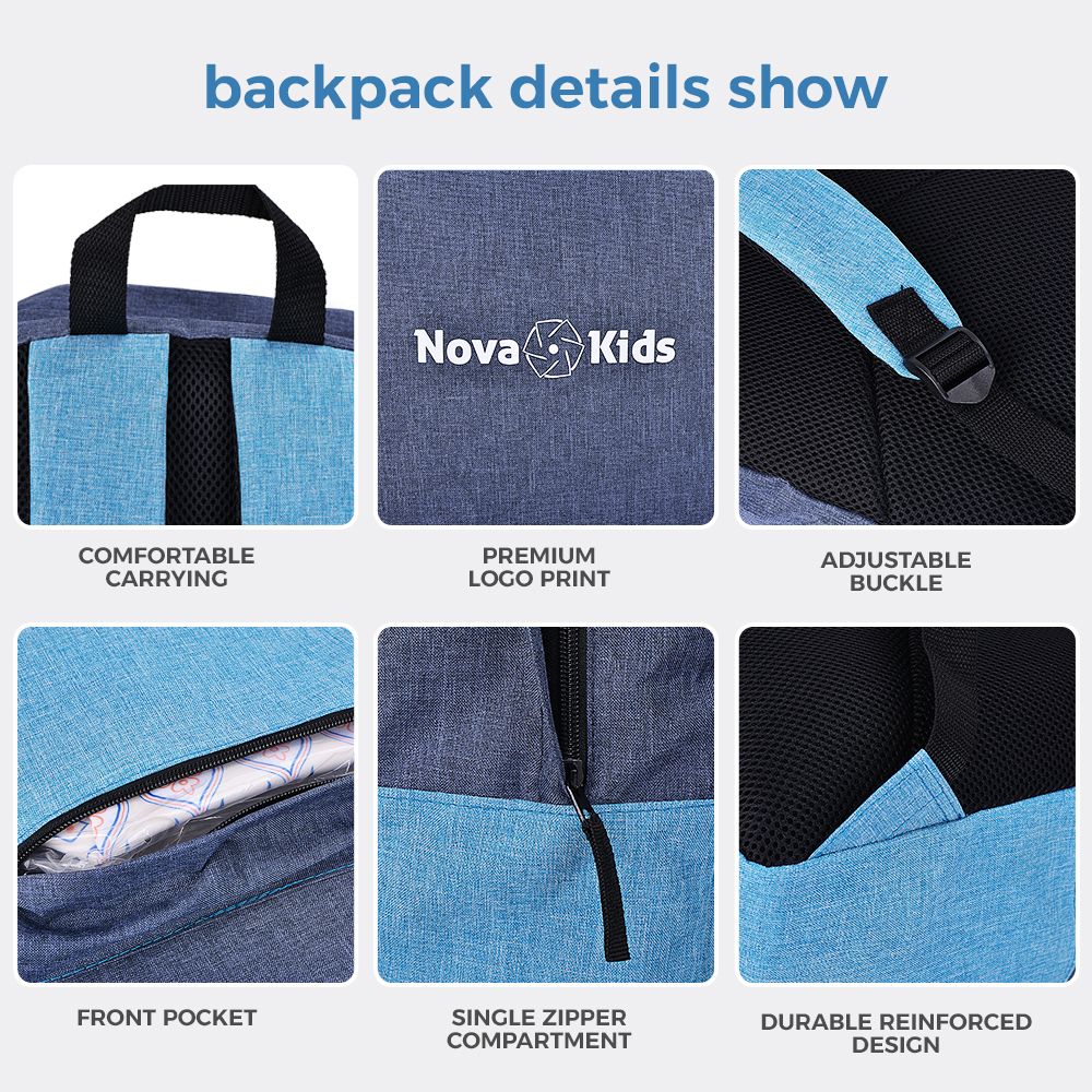 Introducing the Nova KIds 17-Inch/18L School Bag which is Proudly Designed in Dubai. Stylish yet robust, this ergonomic backpack offers a durable design with a high-quality finish. It features a zipper front pocket and a spacious main compartment for perfect organization. Adjustable padded shoulder straps and breathable mesh back support ensure maximum comfort. Made from easy-to-clean polyester, it’s built to last. Solid zippers with firm pullers make opening and closing effortless. Available in lovely colors, this backpack is the perfect gift for back-to-school!