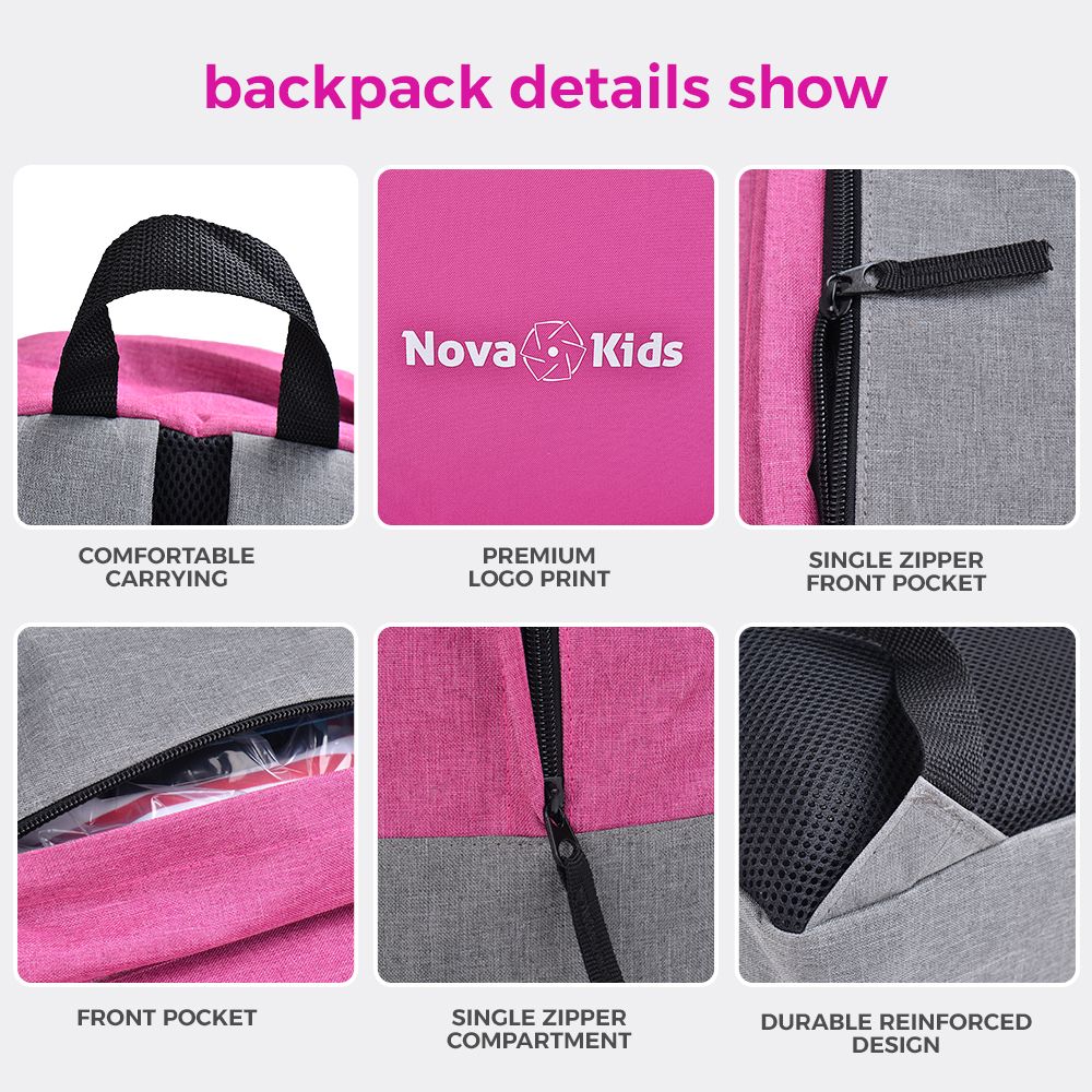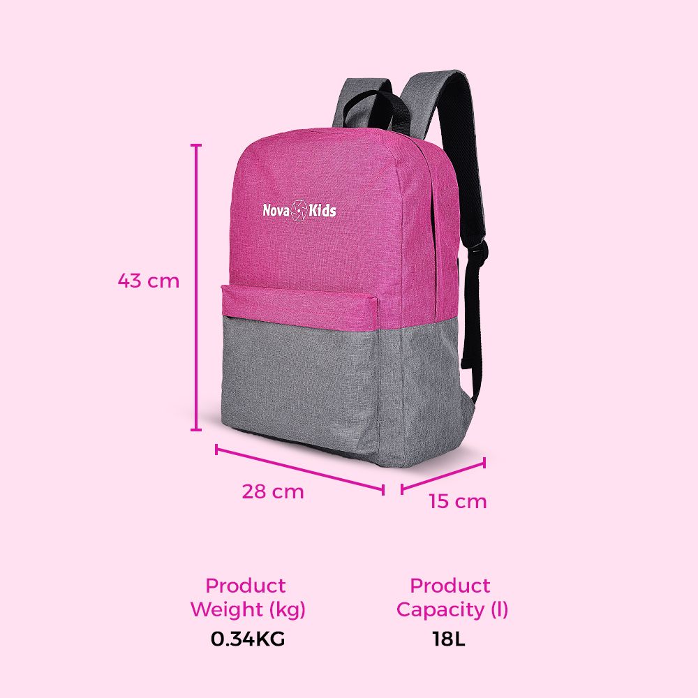Introducing the Nova KIds 17-Inch/18L School Bag which is Proudly Designed in Dubai. Stylish yet robust, this ergonomic backpack offers a durable design with a high-quality finish. It features a zipper front pocket and a spacious main compartment for perfect organization. Adjustable padded shoulder straps and breathable mesh back support ensure maximum comfort. Made from easy-to-clean polyester, it’s built to last. Solid zippers with firm pullers make opening and closing effortless. Available in lovely colors, this backpack is the perfect gift for back-to-school!