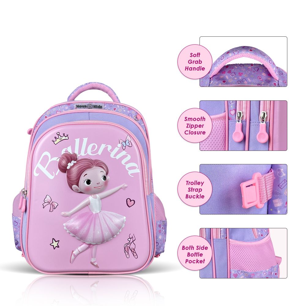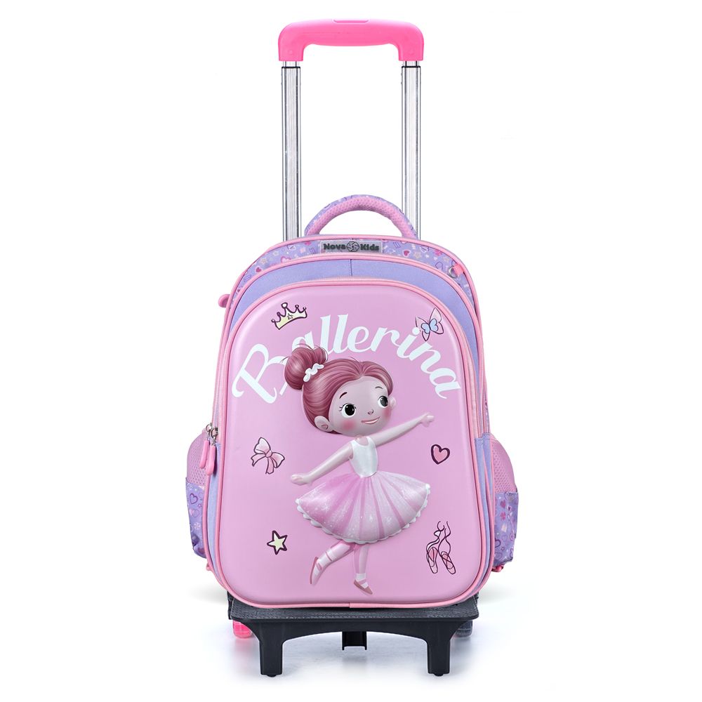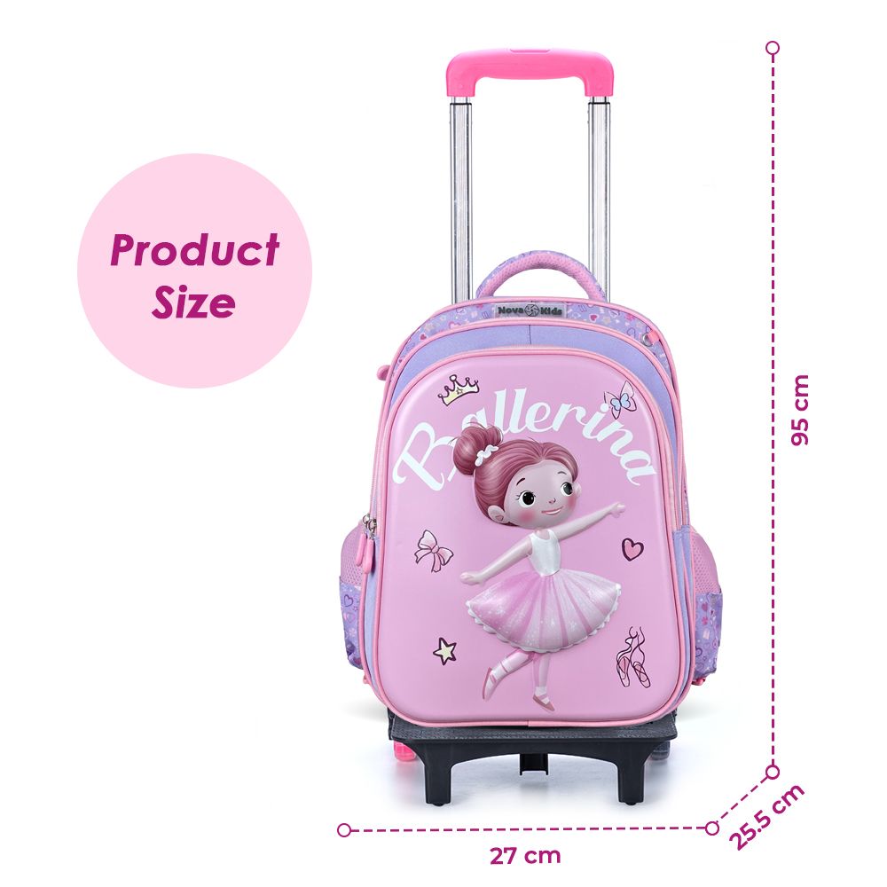 Nova Kids 3D Ballerina School Bag With Trolley 16.5Inch - Pink