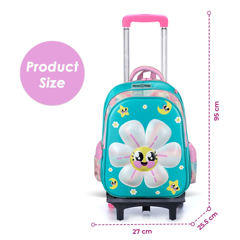 Nova Kids 3D Daisy School Bag With Trolley 16.5Inch - Green