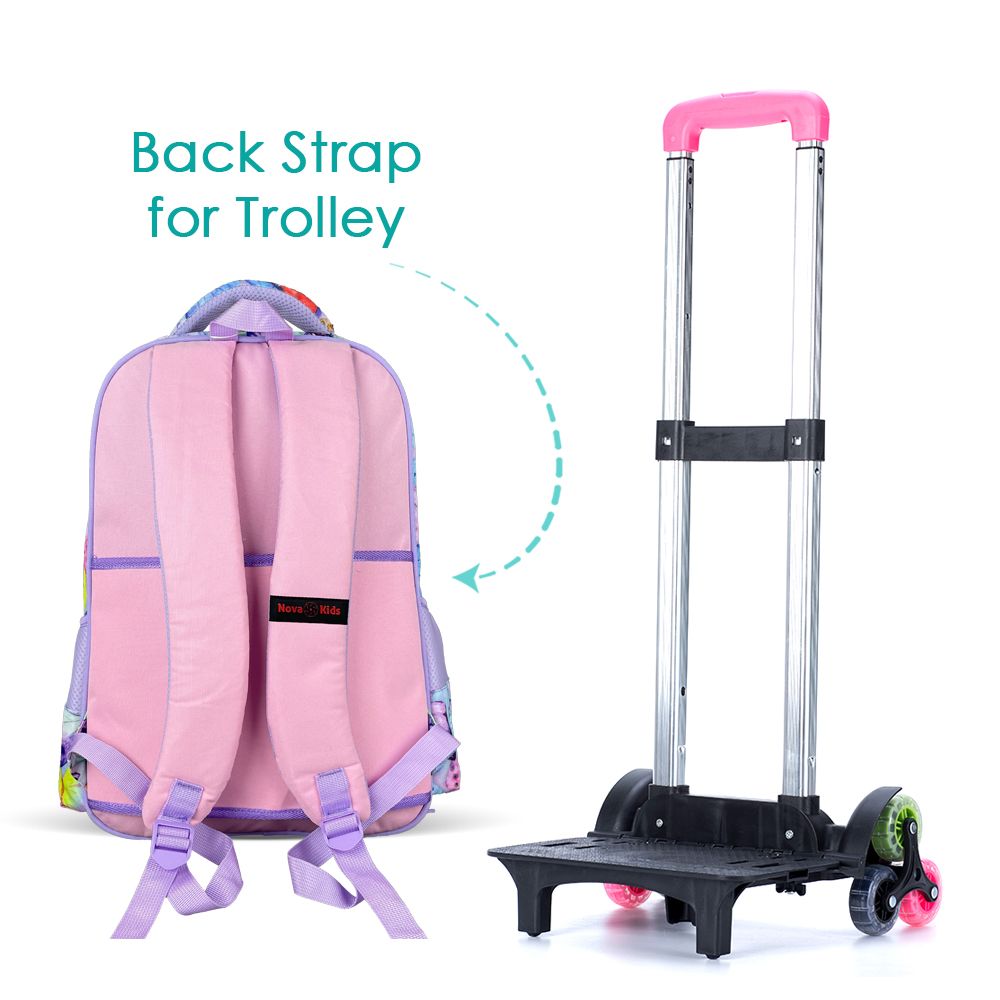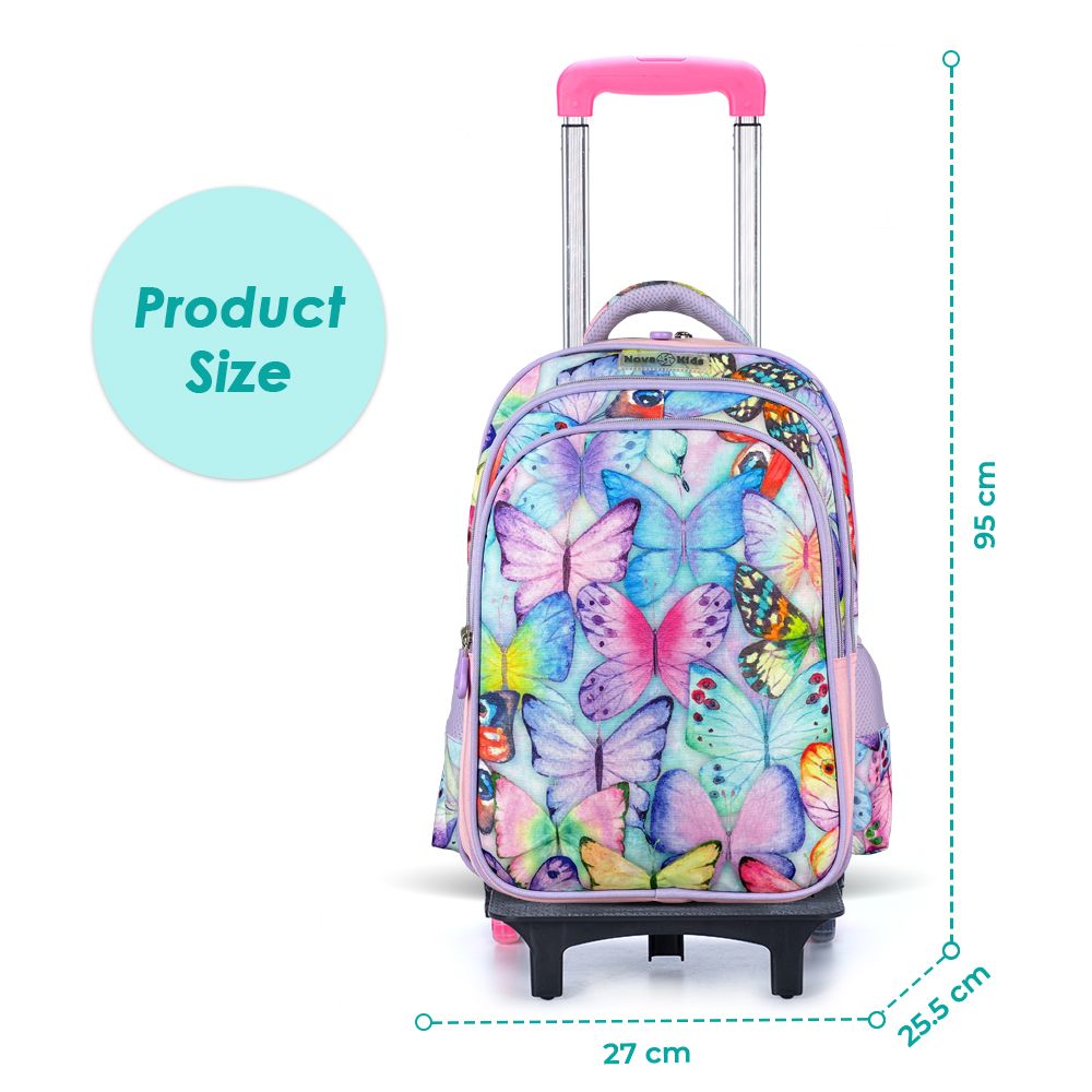 Nova Kids Butterfly School Bag With Trolley 17.5Inch - Purple