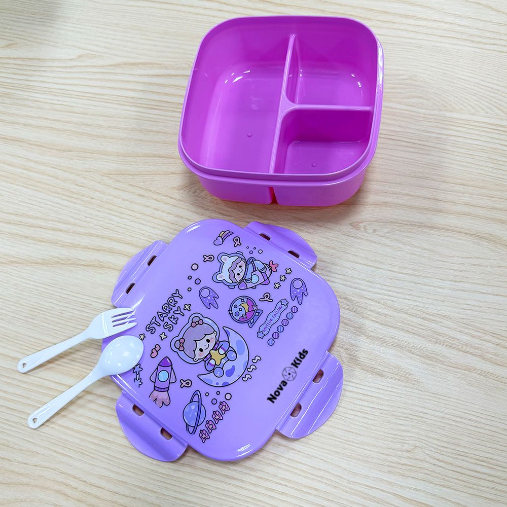 - Comes in three compartments and Spoon and Fork with great color and great Prints. Nova Kids Lunch Set is lightweight to carry to school, suitable for a balanced meal.