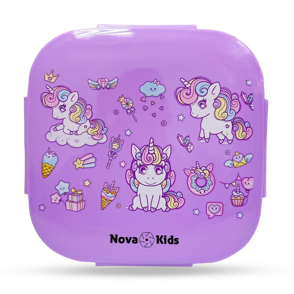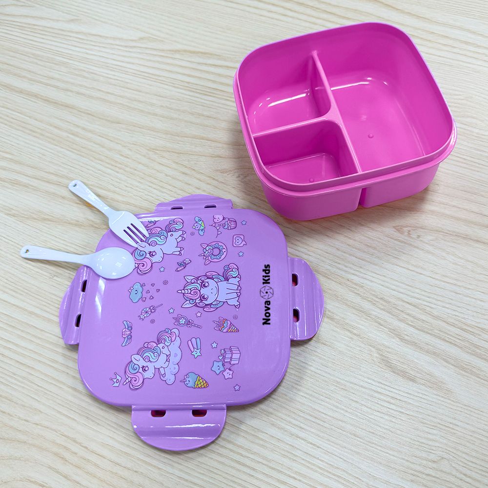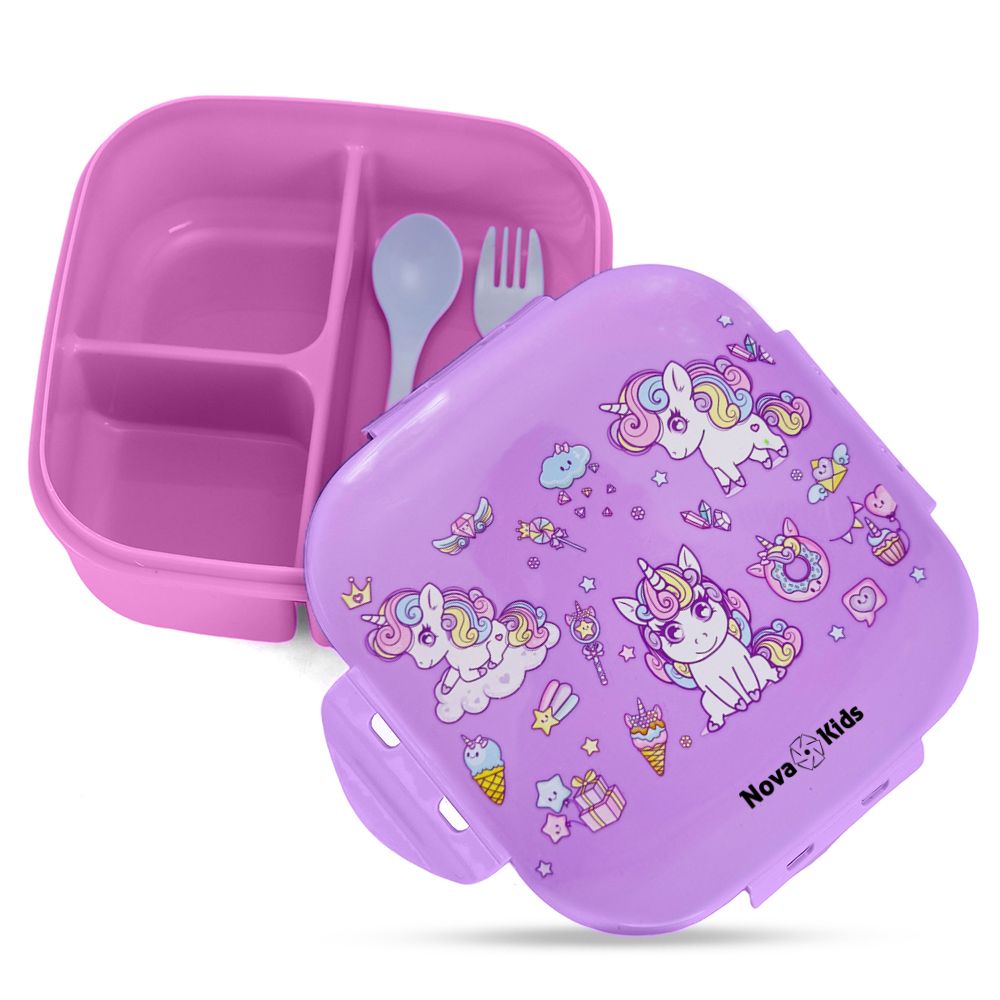 - Comes in three compartments and Spoon and Fork with great color and great Prints. Nova Kids Lunch Set is lightweight to carry to school, suitable for a balanced meal.