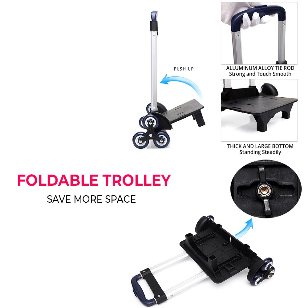 - The backpack Trolley with buckles and straps; Will fit most type of backpacks