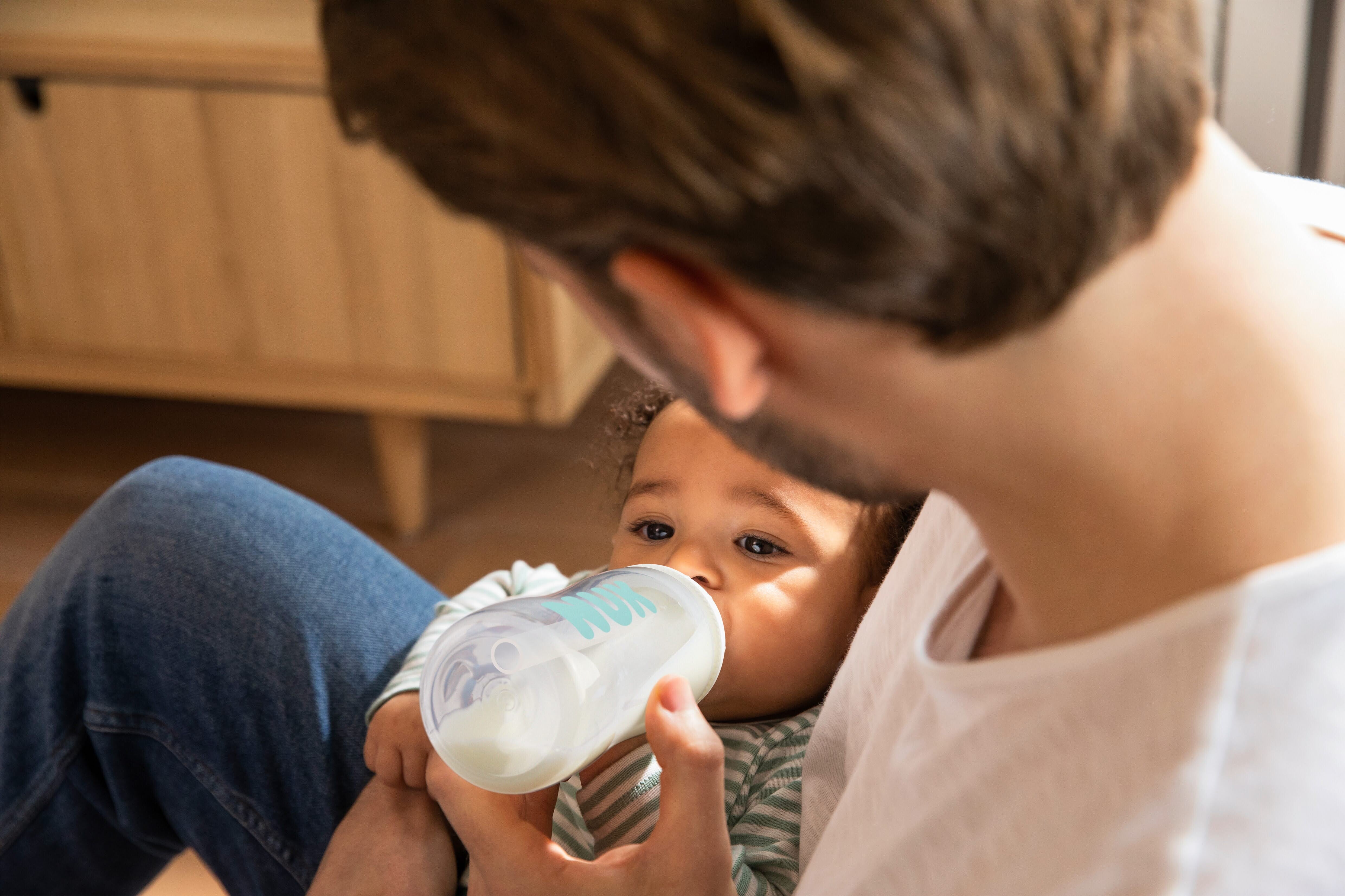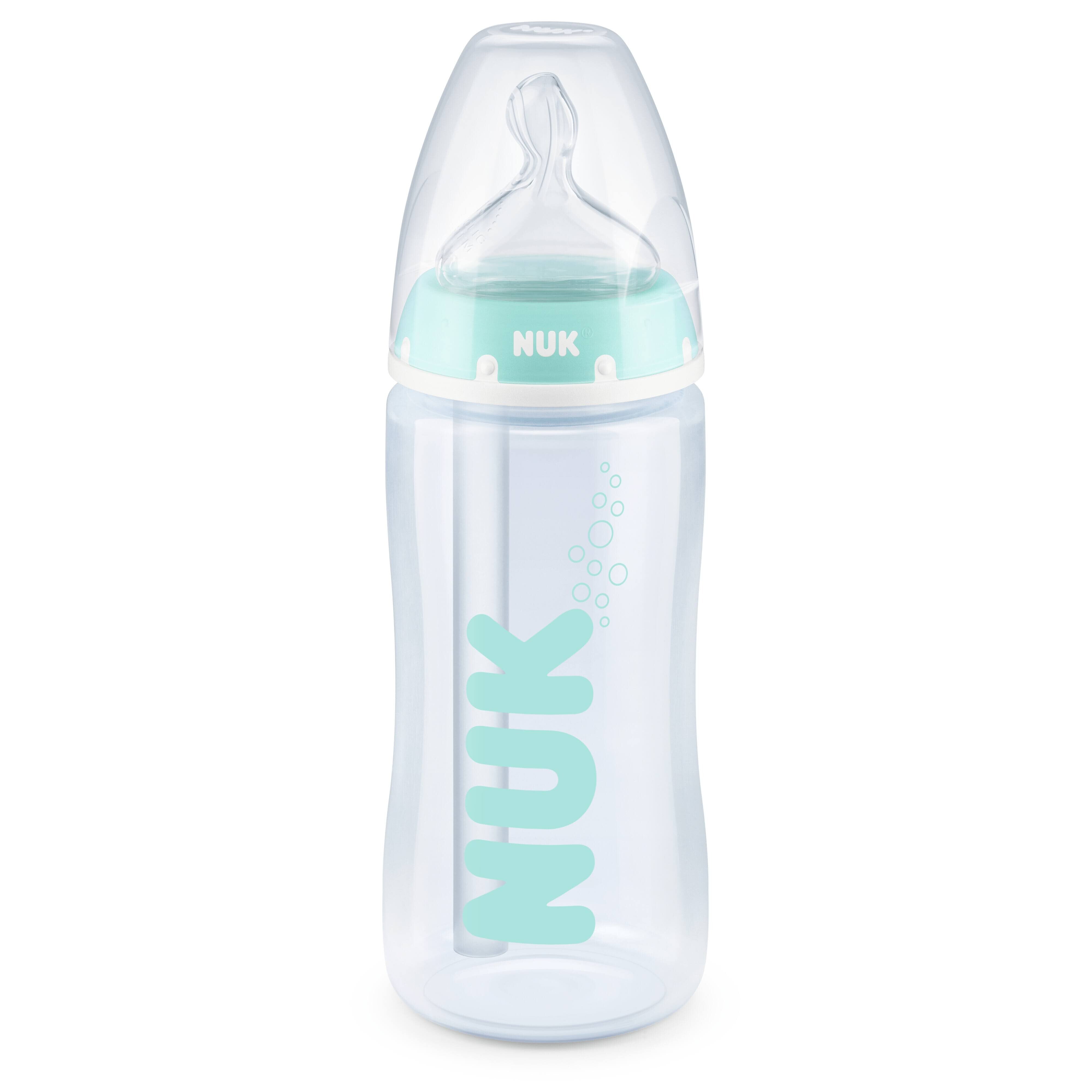 The built-in Temperature Control indicator changes colour from blue to white when the bottle's contents are too hot, so you can be sure your baby's milk is always at a comfortable drinking temperature. The natural shape of the Nuk teat also perfectly adapts to baby's sensitive palate and helps exercise their jaw and teeth. Each bottle is BPA-free and durable, while the included sealing disc ensures leak-proof transportation.