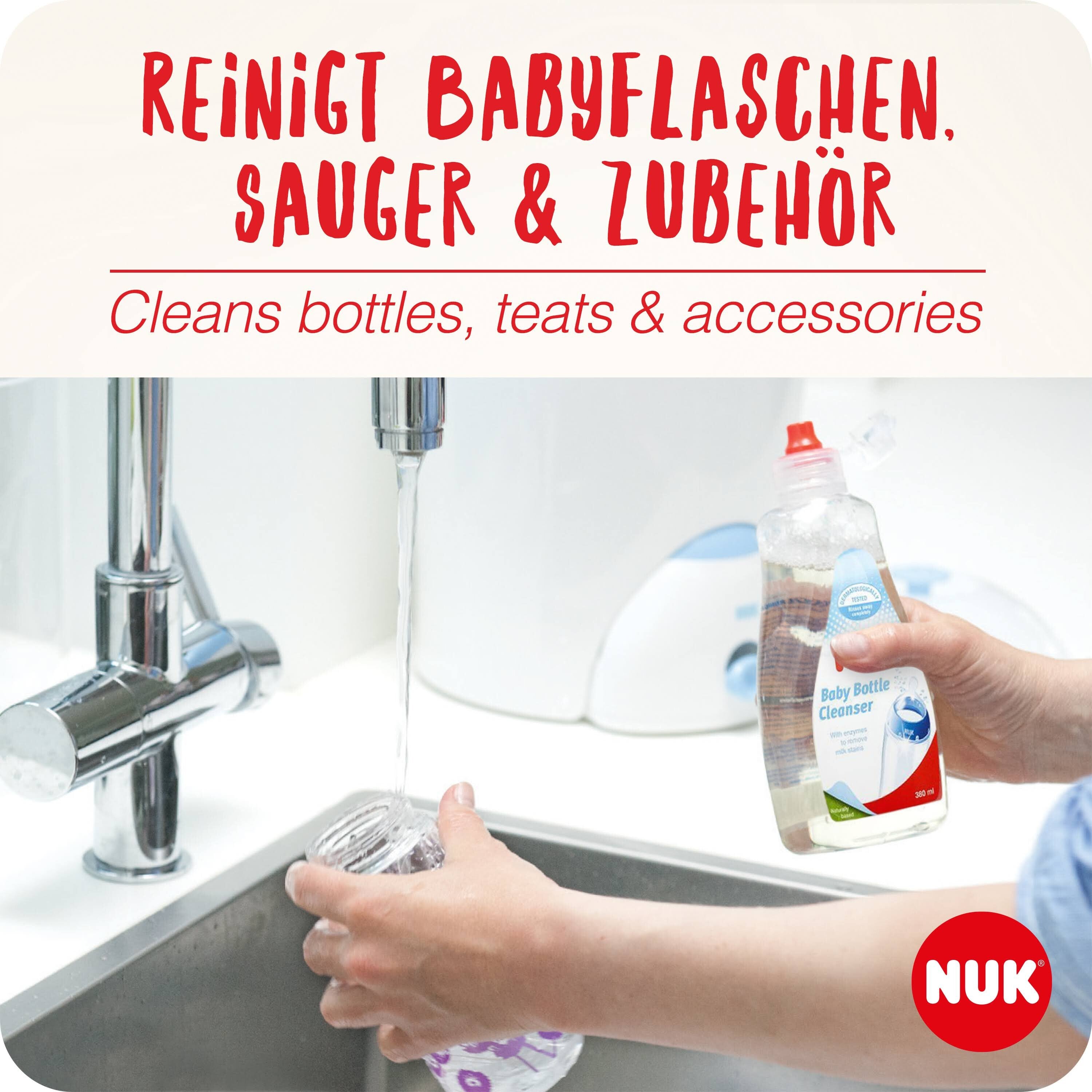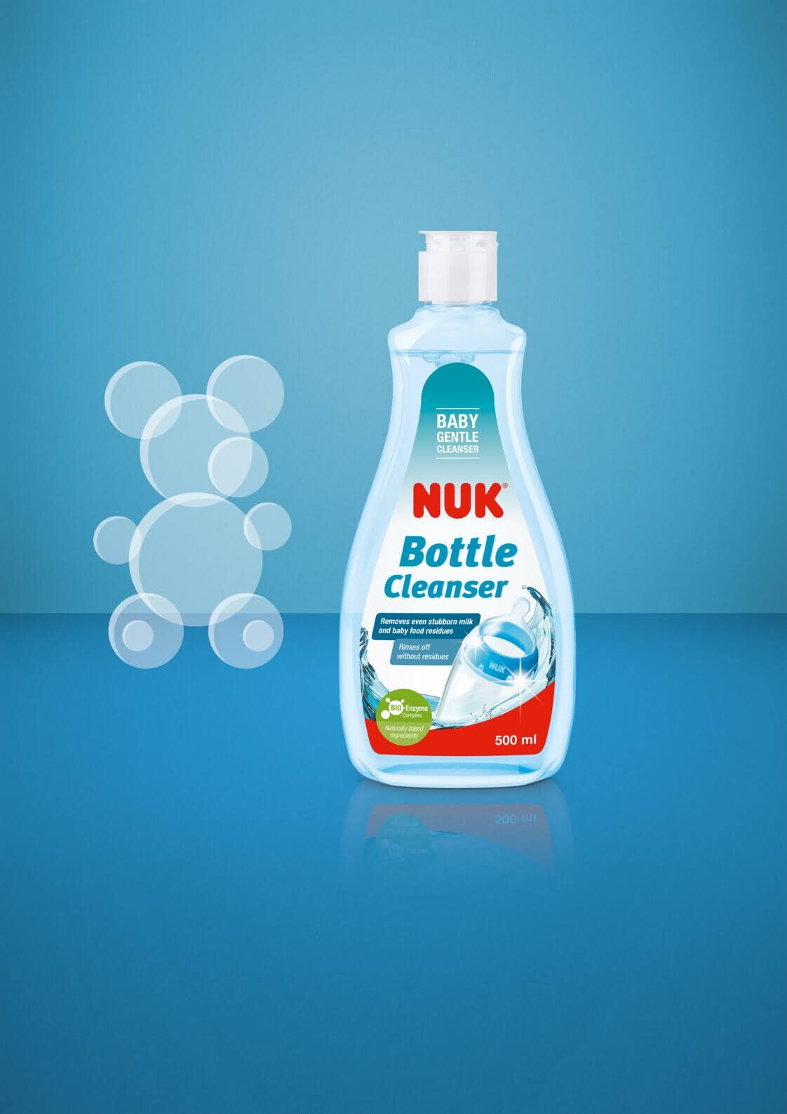 Obvious, isnƒ??t it... A bottle cleanser from Nuk? Naturally! Because we know what parents need, we have developed the Nuk Bottle Cleanser that cleans effectively and is completely safe for your child. This baby bottle cleaner features no fragrance and no colourants, as well as being PH-skin-neutral and hypoallergenic. Powerful enzymes effectively dissolve milk, juice and, thanks to the new formula, even pur??e residue.