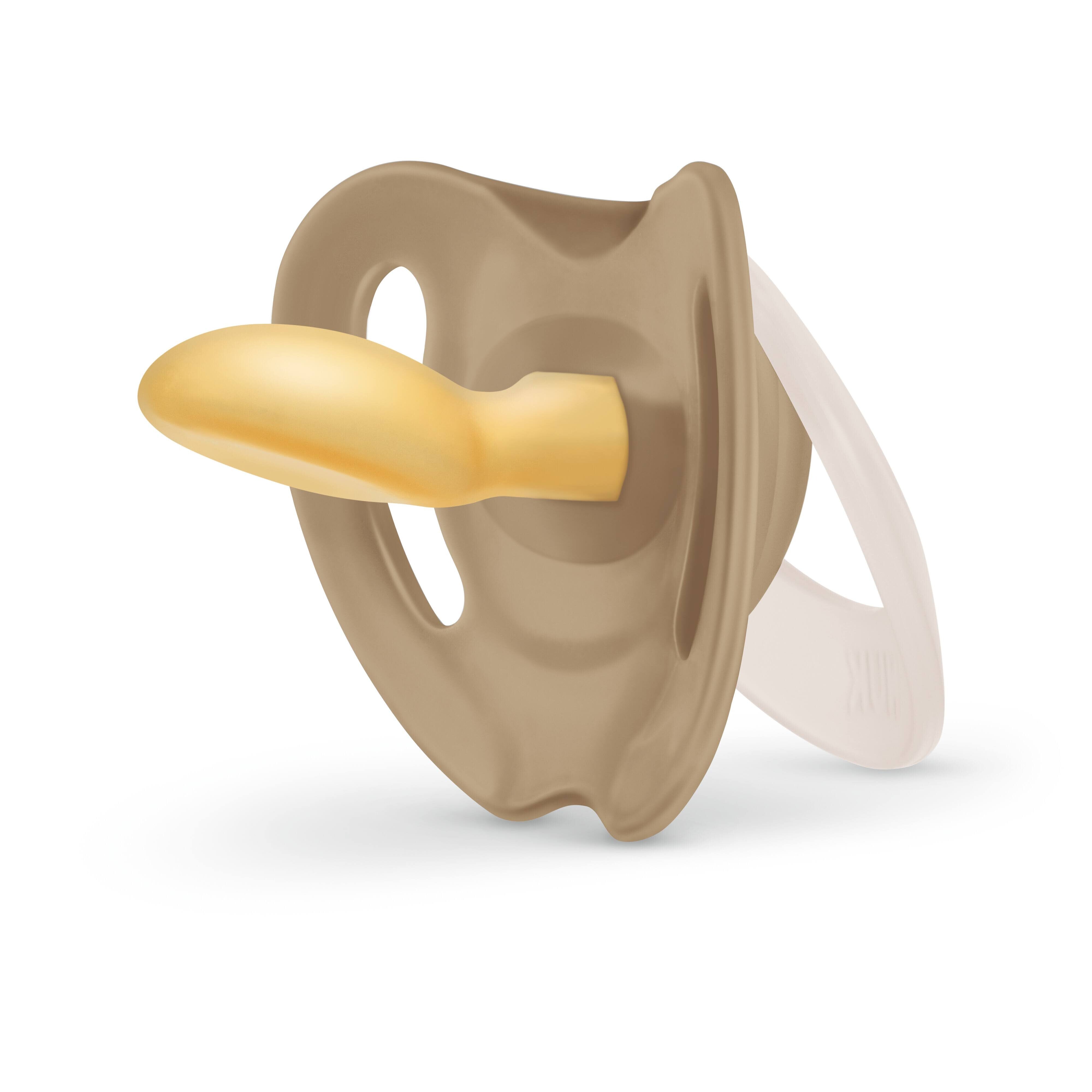 Natural soothes best. That is why we use more than 98% natural raw materials for our Nuk for Nature Soother. For the firm parts, we use sustainable plastic. * The natural origin is independently certified. The soft teat is made of pure natural rubber. A purely plant-based, renewable raw material, which is very soft and warm and is also particularly flexible.