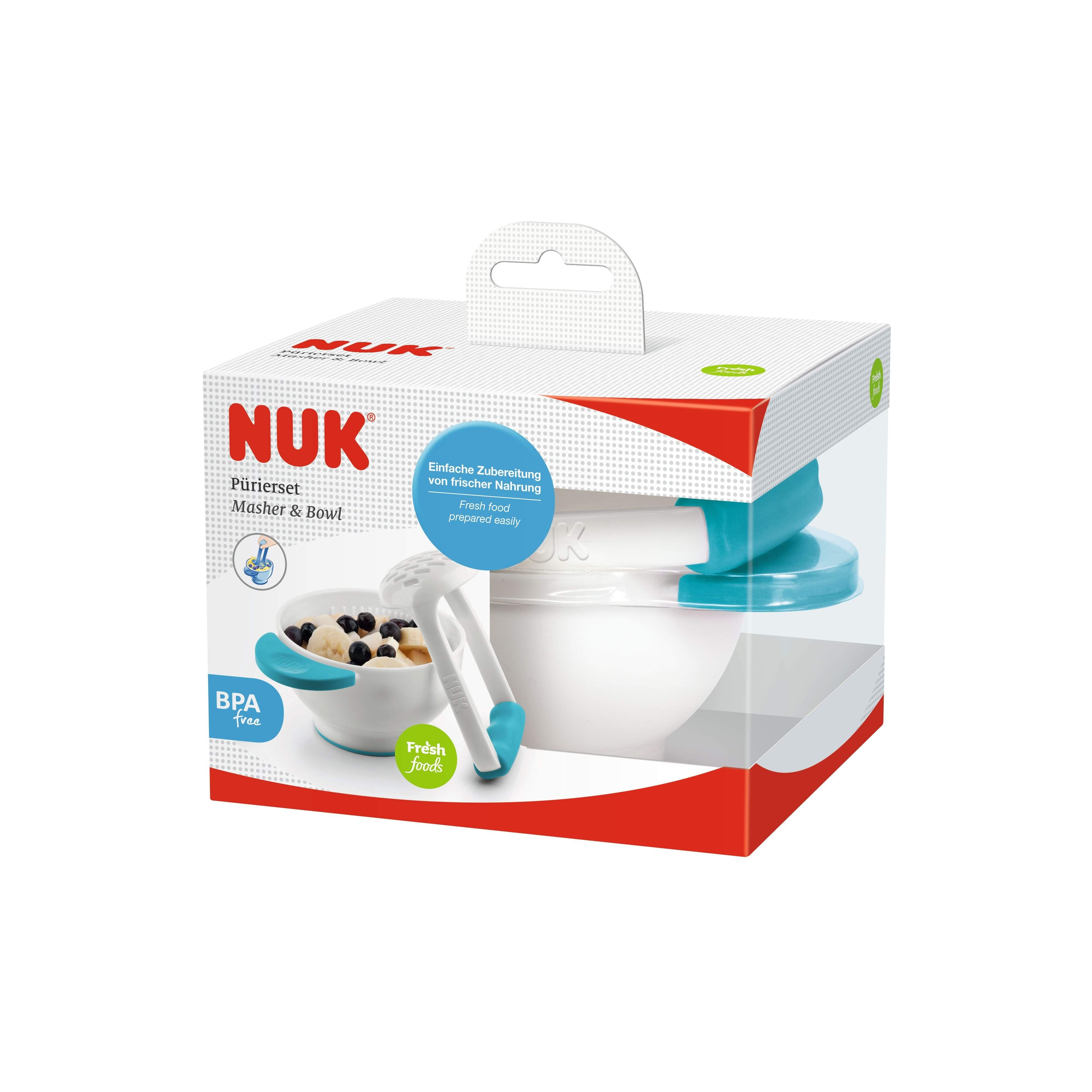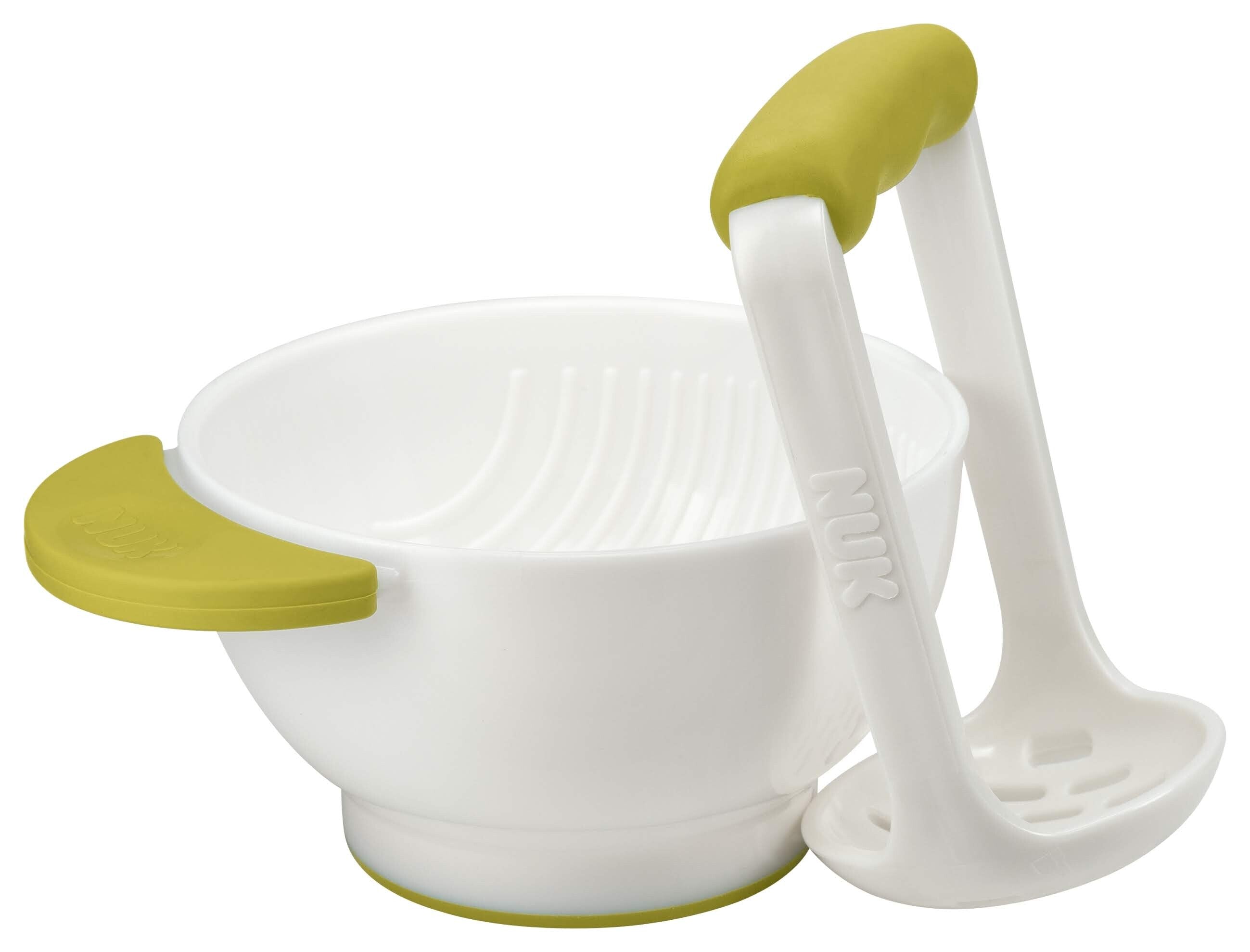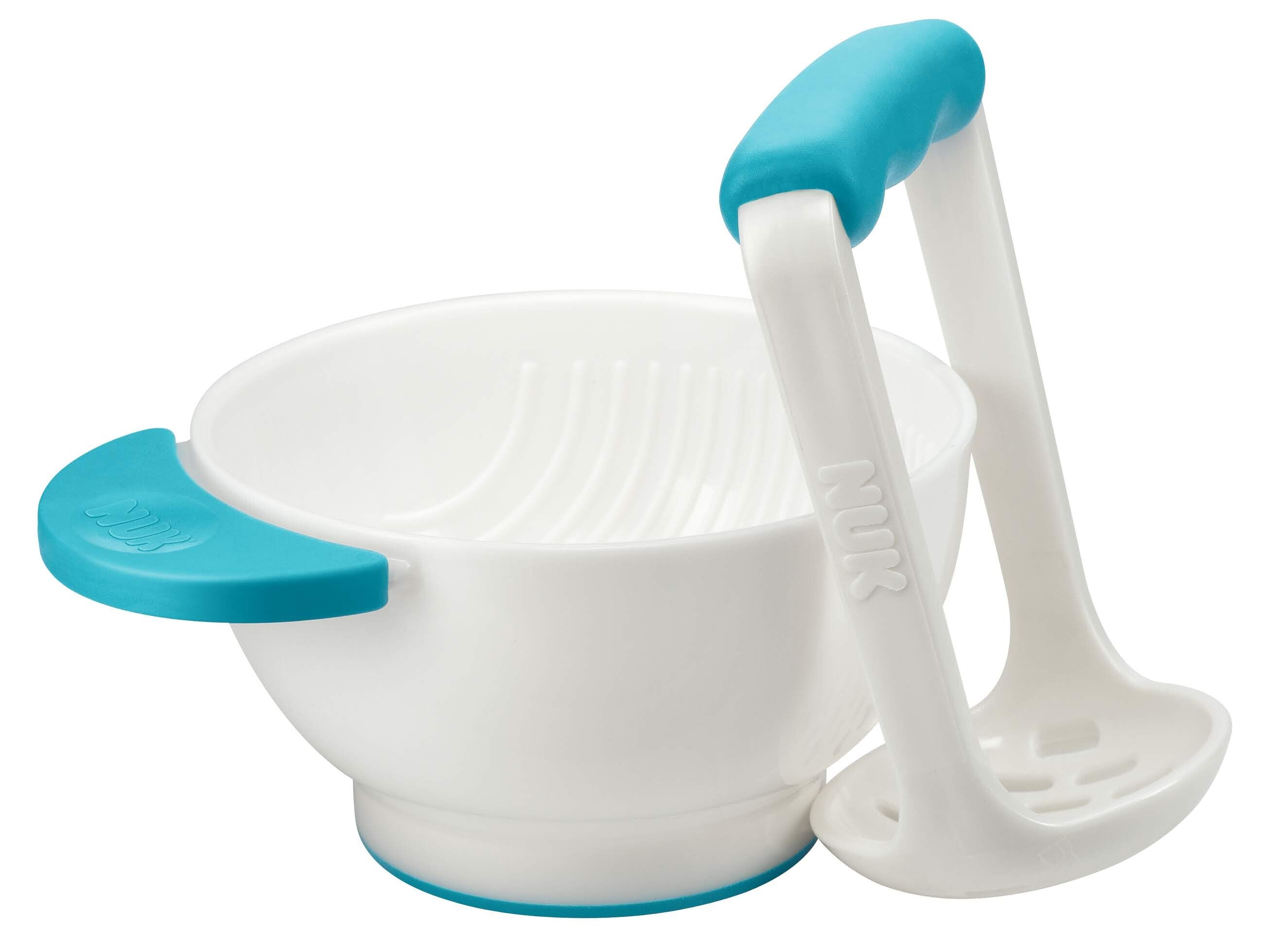 Mash fruits or vegetables easily using the masher; Prepares fresh food quickly and easily; Non-slip handles and base to keep bowl steady; Light and suitable for traveling