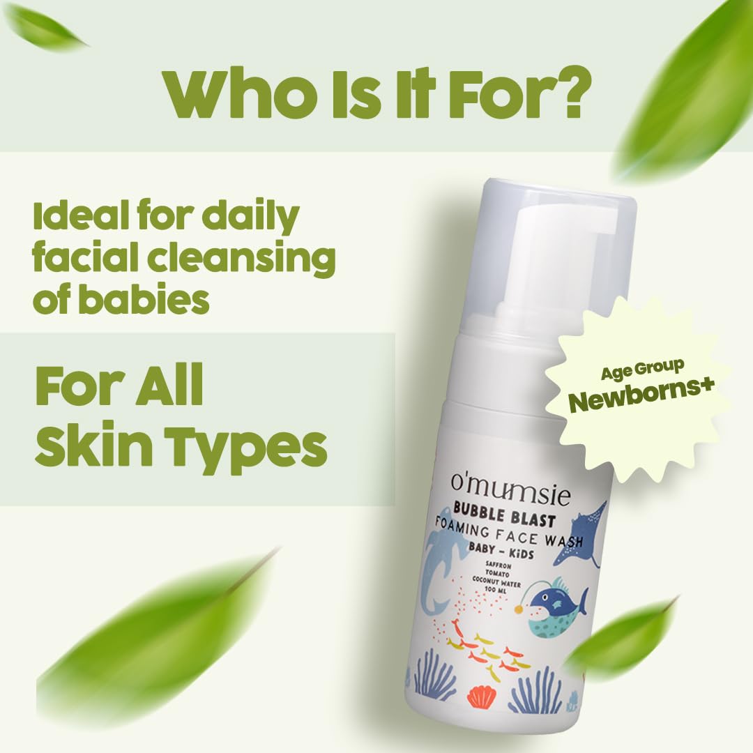 Bubble Blast Foaming Face Wash by omumsie is specially crafted to provide gentle, effective cleansing for your little one's delicate skin. Designed with the utmost care, this foaming face wash is a perfect blend of nature's finest ingredients, ensuring a refreshing and soothing experience for babies and kids.