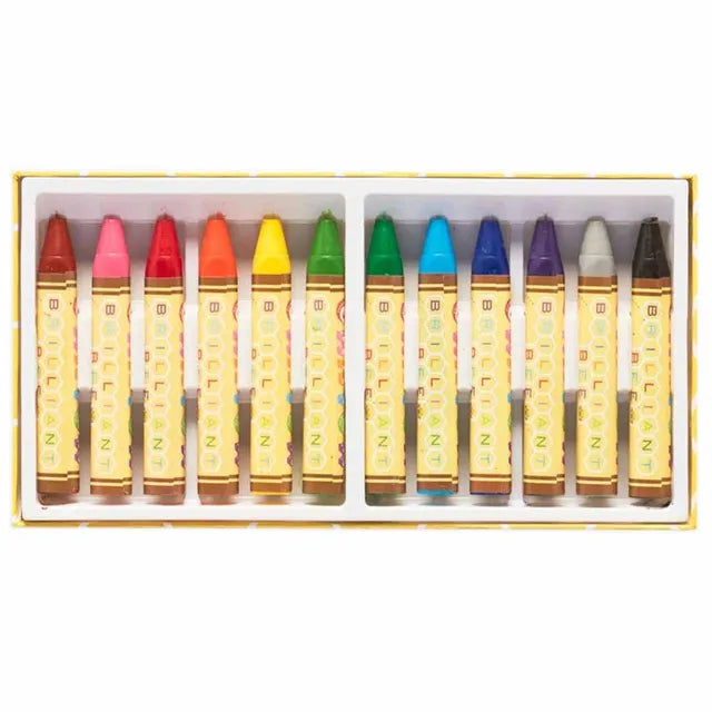 Let your coloring art stand out with Brilliant Bee crayons. This cute crayon set comes with triangle crayons that have a great ergonomic fit and won't roll away. The crayon colors lay smoothly on paper and are a delight to color with. Brilliant Bee crayons color on black paper too. , , Bright, vivid and triangular shaped crayons; Brilliant Bee Crayons have it all. When you're coloring with Brilliant Bee Crayons you can bet that your art will stand out.