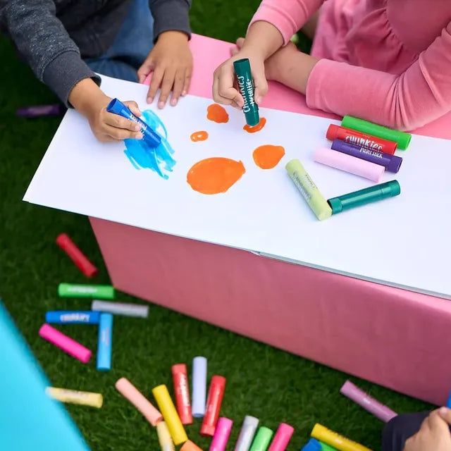 With Chunkies Paint Sticks, you can create colourful paintings without any mess. That's because the paint is encased inside a plastic barrel. Just twist up the paint stick and start painting! The Chunkies Paint Sticks Variety Pack has 24 coloured paints. There's 12 classic paint colours, 6 metallic paint colours and 6 neon paint colours in one set. That's a lot of colourful paint! Chunkies makes for a great paint set for kids because the barrels are thick and are just the right size for little hands. , , Also the paint is quick drying and dries instantly when you lay it on paper so there's no mess at all. Chunkies Paint Sticks don't require any brush or water at all, just colourfully clean painting. Suitable for ages 3 and up. Care and use recommendations: Keep capped when not in use, to help prevent drying. Cover and protect your workspace. This product may stain some surfaces.