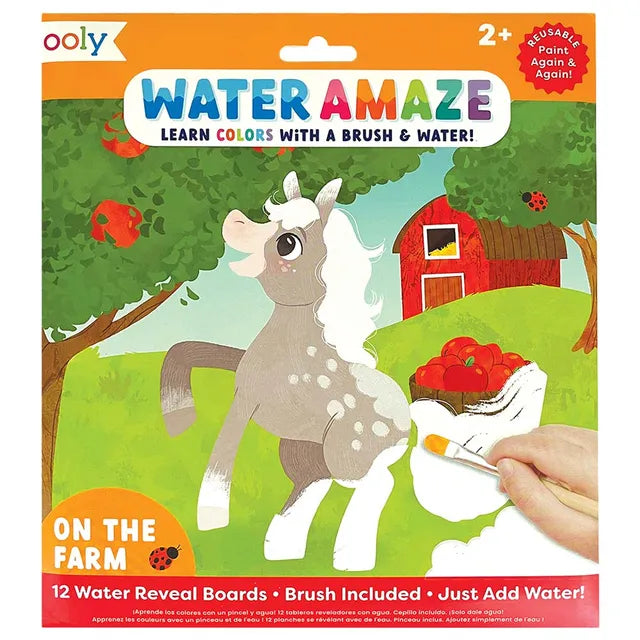 OOLY's Water Amaze water reveal boards bring life on the farm into full color! Made with 12 reusable reveal boards that can be coloured in again and again, this kit is a wonderfully entertaining activity. You provide the water, we'll provide the rest. Life on the farm is always full of color, and with these Water Amaze water reveal boards, your child can transform each reusable board into a vibrant, full-color picture. Learn colours while you visit different farm animals, including horses, ducks, cows, and more. , , Plus, stay on the lookout for a hidden character on each page. Your kiddo will delight in every picture reveal!