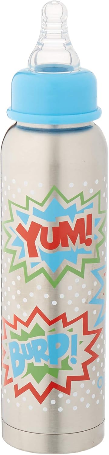 Our signature stainless steel Narrow Neck bottles feature a thin, tall body shape which is easy for baby to hold. Our Narrow Neck bottles include: Accordion Flex peristaltic silicone vented nipple with a stretch and flex action that creates the ideal bottle feeding conditions and reduces the chance of gas or colic. Seal tight, leak-proof and color coordinated bottle ring that eliminates drippy messes during feeding. Stainless steel lid to keep the nipple clean and doubles as a 2oz measuring cup for perfect breast milk measuring and preparing formula.