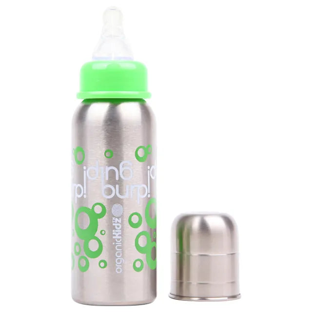 Our signature stainless steel Narrow Neck bottles feature a thin, tall body shape which is easy for baby to hold. Our Narrow Neck bottles include: accordion Flex peristaltic silicone vented nipple with a stretch and flex action that creates the ideal bottle feeding conditions and reduces the chance of gas or colic. Seal tight, leak-proof and color coordinated bottle ring that eliminates drippy messes during feeding stainless steel lid to keep the nipple clean and doubles as a 2oz measuring cup for perfect breast milk measuring and preparing formula.