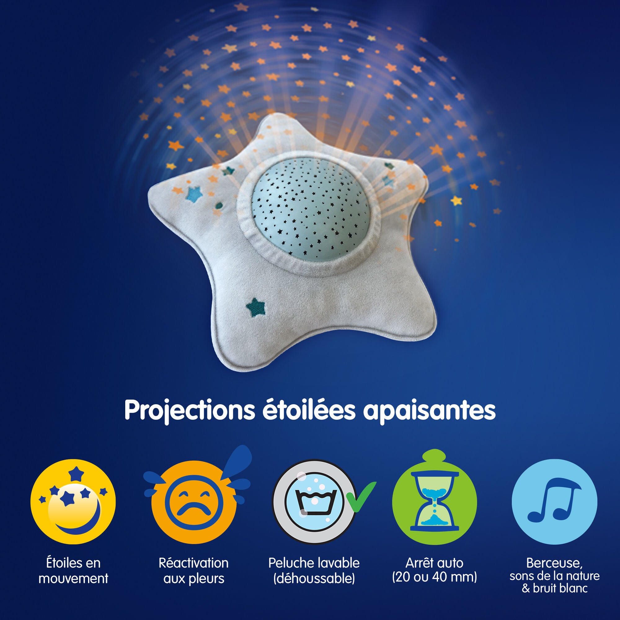 Milky Way soothes children at bedtime and helps them falling asleep with its animated stars projections and soft music. It creates a magnificent starry sky, with stars moving slowly, as if baby was sleeping under the stars! The stars come to life on the walls and ceiling, creating an incredibly relaxing show. In addition, the projections and the music evolve according to the sleep phase, to encourage sleep.