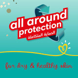 ALL AROUND WETNESS PROTECTION FOR DRY AND HEALTHY SKIN: Three absorbing channels distribute wetness evenly and lock it better, using the full diaper from front to back for up to 100% leakage protection and over 12 hours of dryness.