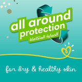 ALL AROUND WETNESS PROTECTION FOR DRY AND HEALTHY SKIN: Three absorbing channels distribute wetness evenly and lock it better, using the full diaper from front to back for up to 100% leakage protection and 13 hours of dryness.