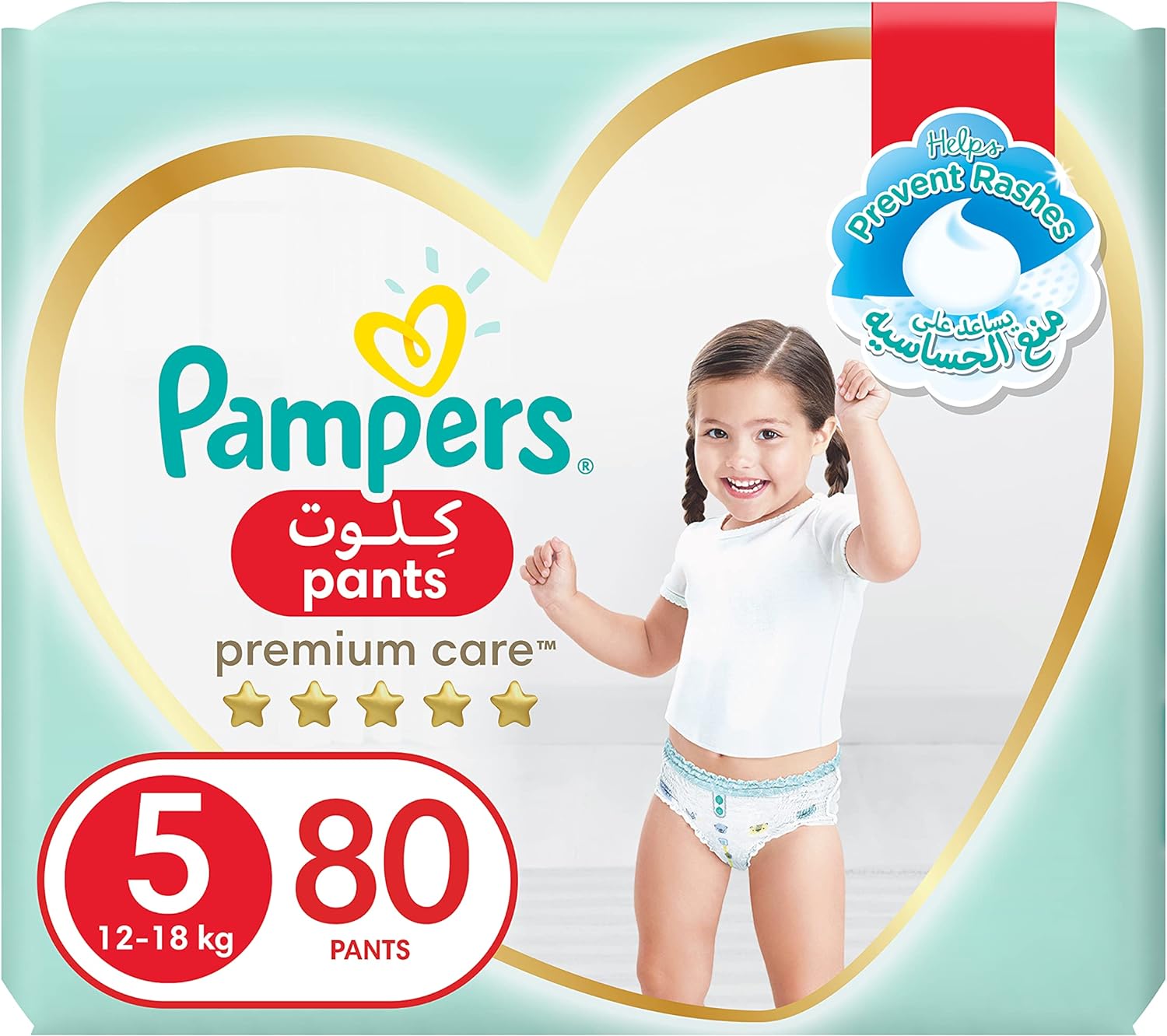 Ensure maximum comfort and protection with Pampers Premium Care Diaper Pants. Featuring a soft and stretchy belt, they go up with just one pull, even when your baby is wriggling around. Equipped with Extra Absorb Channels designed to distribute wetness evenly and lock it away from the baby's skin, Pampers Premium Care Pants keep your baby comfortable for up to 12 hours. Designed for all-around gentle fit, and made with silky-soft materials, they provide our gentlest touch to the skin, for even more comfortable feeling. Plus, the Disposal Tape secures the diaper for easy disposal, so you can now say goodbye to fussy diaper changes. Pampers range which incorporates innovative German technology, ensure that leakage is one less thing for you to worry about when it comes to your active little one.