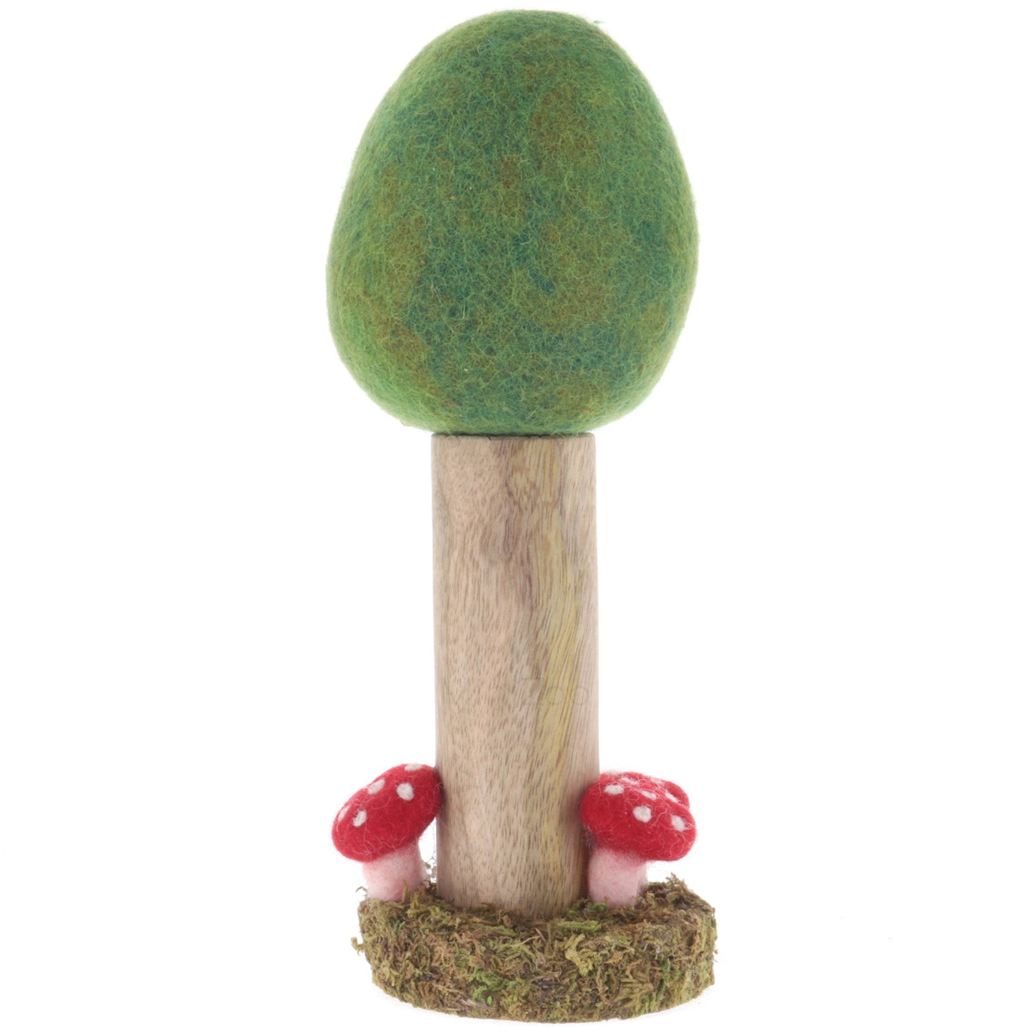The Papoose Woodland Tree Summer has a beautiful natural wood trunk and dark green felt top. The tree sits on a mossy base featuring toadstools making a great statement in any playroom!