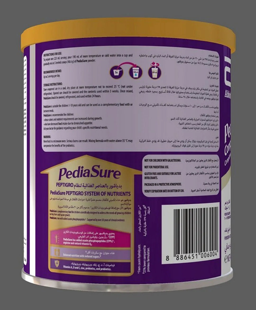 Balanced nutrition to help kids, 1 year of age or older, grow with Triple Sure System, that includes 37 nutrients to support growth and development. Pediasure, now with added arginine and natural vitamin K2, provides all essential nutrients needed for healthy growth. It contains high-qulaity protein, calcium and Vitamin D with prebiotics and probiotics. It can be used as a complementary food with or between meals.