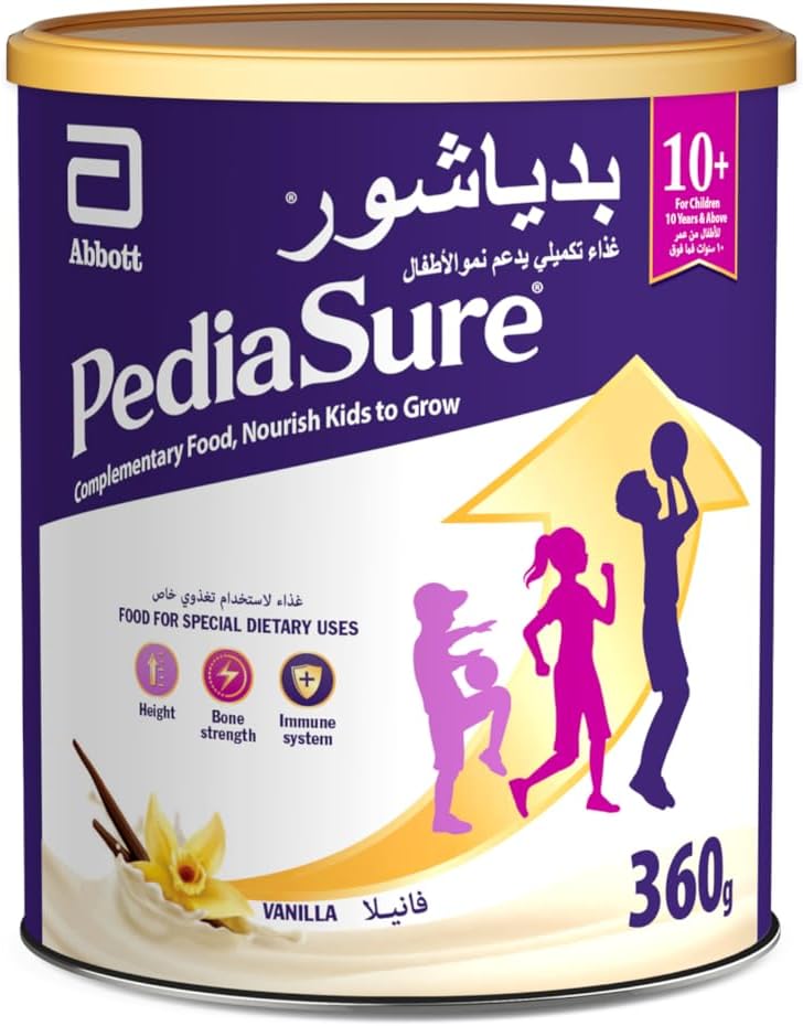 Pediasure 10+ Vanilla 360g offers tailored nutrition for children aged 10 and above, ensuring they receive essential nutrients during crucial growth years. Specially formulated with a balanced blend of protein, carbohydrates, healthy fats, and vital vitamins and minerals, Pediasure 10+ supports overall growth and development. The delicious vanilla flavor appeals to children's taste preferences, making it easier to incorporate into their daily routine.