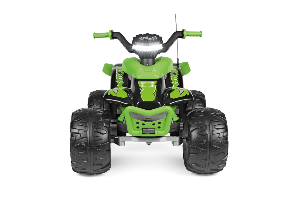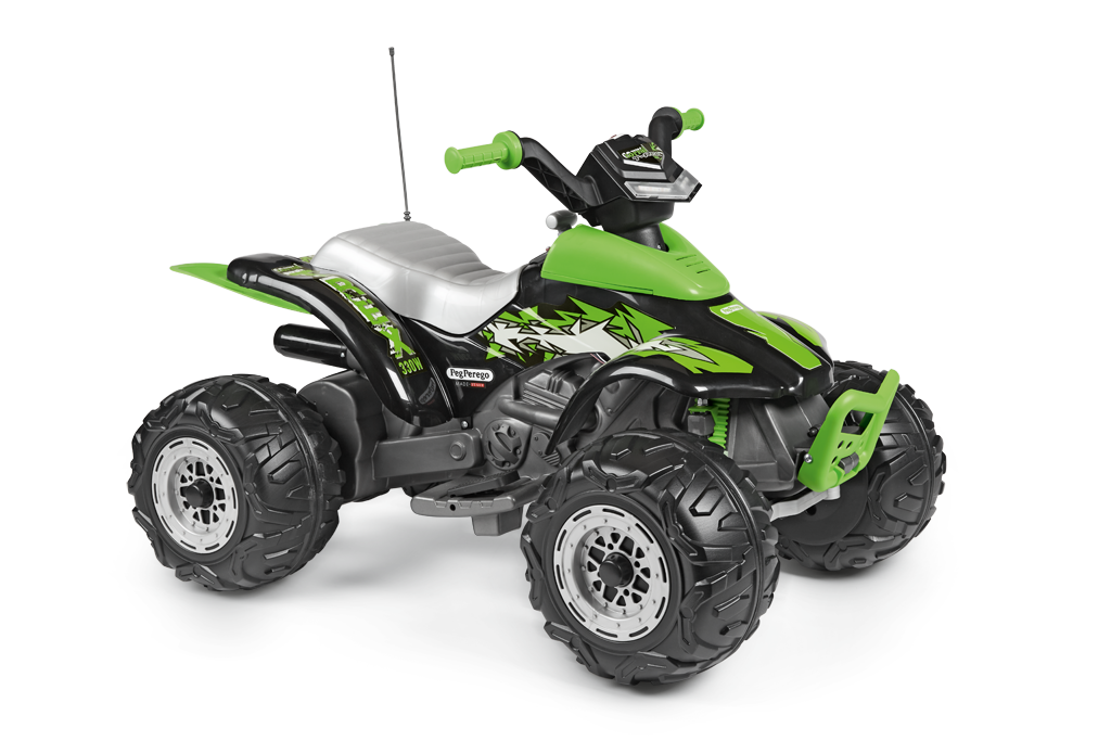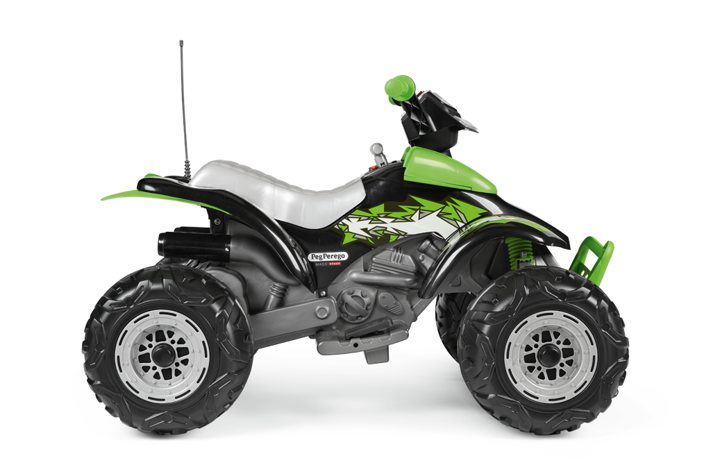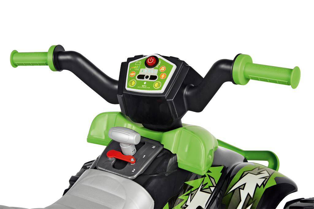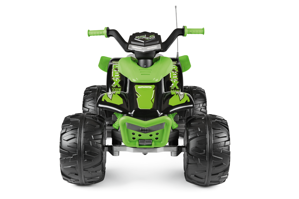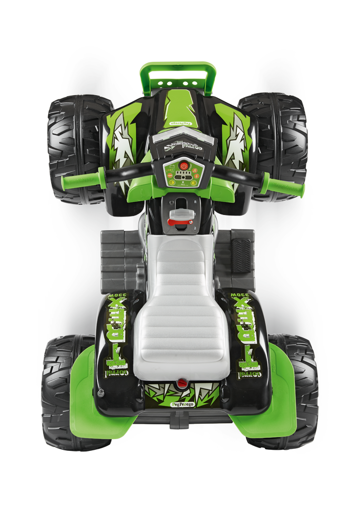 Corral T-Rex 330W is the iconic Peg Perego quad, always ready for new adventures. All-Italian quality and high-performing characteristics such as lights, sounds, tunes, and a horn, for great fun from the age of 3. The electric quad operates with a 12V/8Ah/100 Wh rechargeable battery.