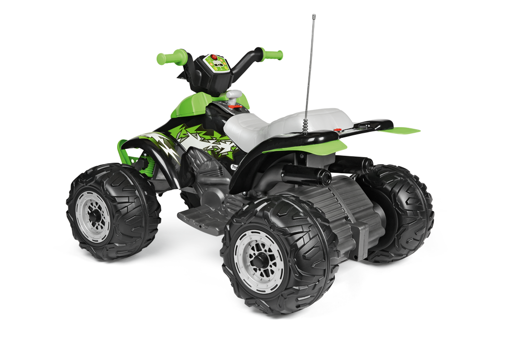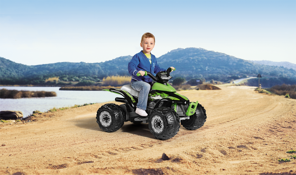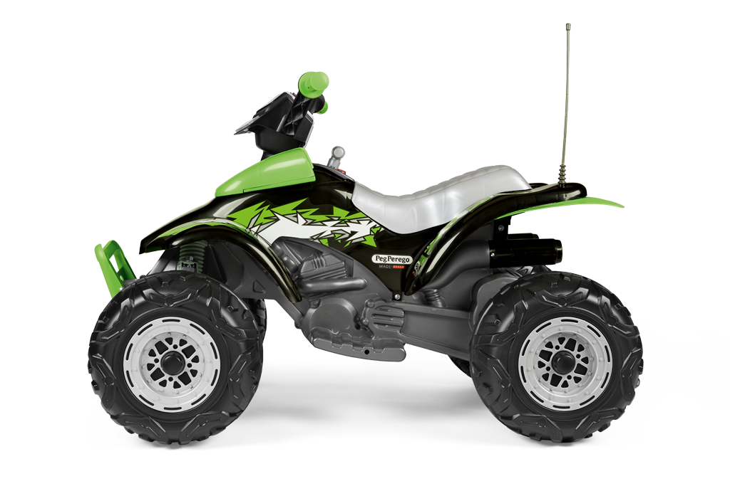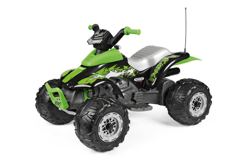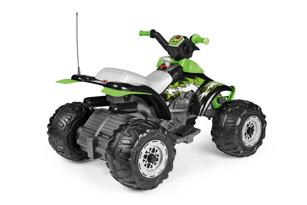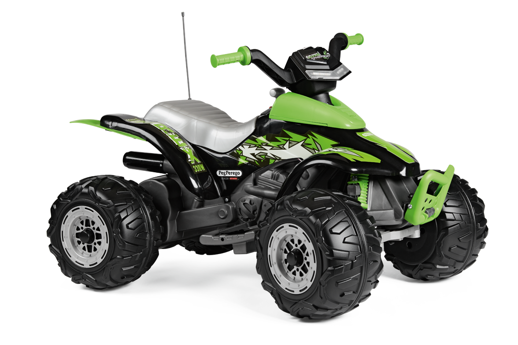 Corral T-Rex 330W is the iconic Peg Perego quad, always ready for new adventures. All-Italian quality and high-performing characteristics such as lights, sounds, tunes, and a horn, for great fun from the age of 3. The electric quad operates with a 12V/8Ah/100 Wh rechargeable battery.