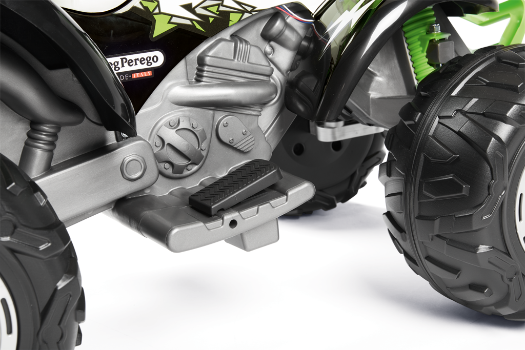 - Foot Rest and Handles - Just as good as a real quad! Bumpers, mud flaps, footrests, and plenty of driving comfort due to a spacious seat and anti-slip handles